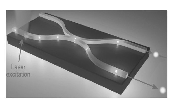 为了克服主客掺杂型有源材料均匀性和稳定性差的问题,采用键合掺杂方法,将高温热解法制备的油酸修饰掺铒氟钇钠纳米晶粒与甲基丙烯酸甲酯发生共聚反应,形成键合型有源芯层材料。纳米晶粒均匀固定在聚合物分子链上,抑制了高浓度掺杂时的团聚析出且材料更稳定。纳米粒子在聚合物中的质量百分比达到约1wt%,具有良好的成膜性,用原子力显微镜照片观察薄膜表面粗糙度为1.76 nm。用椭偏仪测量薄膜光学性质,并用柯西色散模型拟合出薄膜折射率随波长的变化关系,材料在1 550 nm信号光波长的折射率为1.485。设计嵌入式波导结构,采用有限元方法进行模式分析和计算光场强度分布。采用紫外光刻和感应耦合等离子体刻蚀工艺制备凹槽形下包层,填充有源材料制备条形波导放大器。实验结果表明,当1 550 nm信号光功率为0.1 mW,1 480 nm泵浦光功率为390 mW时,在1.2 cm长的样品中得到了3.58 dB的信号光相对增益。