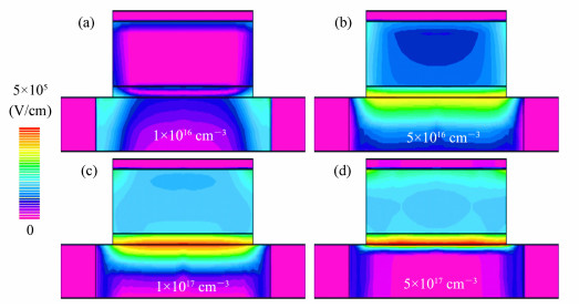 为了实现高效的微光探测以及满足量子通信的需求,需要研发制备具有高增益、低噪声和高带宽的高性能红外探测器,基于硅衬底材料的锗硅雪崩探测器(Avalanche Photodiode, APD)被认为是有希望实现近红外通信波段高效弱光探测的探测器件。本工作设计研究了一种横向收集结构的锗硅APD,并对其结构参数对电场分布的影响进行了仿真模拟。发现该结构中硅倍增层的掺杂浓度、尺寸等对器件电场分布具有很重要的影响,并且利用能带理论对其进行了解释说明。倍增层掺杂浓度提高后,增强的结效应导致该器件中出现了有趣的双结结构,横向的n+-n-结与纵向的p+-i-p--n-结共同作用于电场分布,并且实现了纵向雪崩与横向载流子收集。在-30 dBm 1 310 nm光源正入射下,新设计的横向吸收结构APD经过优化带宽可以达到20 GHz;线性响应度0.7 A/W;由于采用了键合方法,其暗电流可以下降至10-12 A。基本满足近红外通信波段弱光探测的高速、低暗电流、探测能力强等要求。