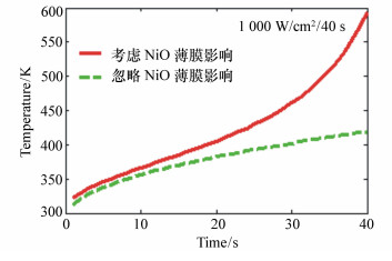 本文研究了强激光辐照下漫反射金膜在近红外波段的反射特性,建立了漫反射金膜表面反射率在线测试系统,得到了不同激光参数辐照下膜层表面反射率变化曲线。检测了金膜表面氧化产物的主要成分,给出了氧化产物的生成机理。根据氧化理论和单层膜反射理论建立了金膜表面反射率变化计算模型,并基于该模型分析了膜层氧化对激光辐照温升的影响。结果表明:强激光辐照下漫反射金膜表面生成了一层光学薄膜,组分为NiO,生成速率满足对数定律;NiO薄膜对入射激光的吸收是金膜表面反射率下降的主要原因,而且辐照光强越强膜层氧化越快。