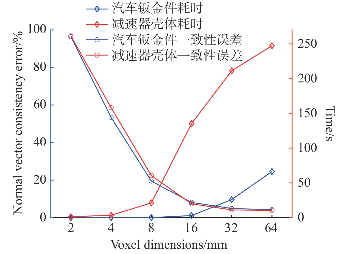 为了实现复杂曲面零件高效自动化测量,本文提出了一种基于改进栅格法的面结构光扫描视点规划方法,并将其应用在汽车复杂曲面零件自动化测量中。首先,针对人工示教视点冗余严重,扫描完整性差的问题,提出了一种基于改进栅格法的面结构光扫描视点规划算法,根据面结构光扫描仪的有效测量范围,确定栅格尺寸,改进候选视点生成策略,并通过扫描仪的测量约束条件得到候选视点的有效测量范围,利用视点质量评价函数确定最优视点。其次,针对视点规划过程中算法耗时长,特征重建精度低的问题,采用体素网格法简化模型,通过八叉树算法分割复杂曲面模型,根据法向量一致性误差确定体素网格尺寸,并且对于几何特征不同的模型,分析权重系数对扫描质量的影响,给出最佳权重系数。最后,进行了汽车钣金件和减速器壳体扫描视点规划和测量实验。结果表明,汽车钣金件视点规划耗时21.93 s,扫描完整性为99.124%,扫描精度为0.025 mm;汽车减速器壳体视点规划耗时158.29 s,扫描完整性为93.231%,扫描精度为0.032 mm。本方法能快速完成复杂曲面视点规划,并且采用规划视点扫描的模型完整性好,精度高,能够满足复杂曲面零件自动测量的要求。