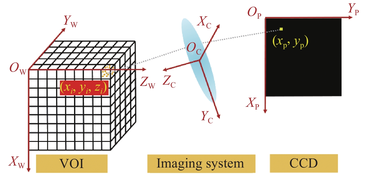 为了对激光光强分布进行准确测量,本文提出基于层析成像技术的激光光强分布测量方法。首先,通过数值仿真计算,对采用的成像模型的准确性以及重建算法的收敛性进行验证。对不同激光光强分布模型以及不同随机噪声等级时的重建精度进行评估。经计算,采用不同典型激光光强模型时其重建误差均小于等于7.02%;在施加10%以内随机噪声时,重建误差均小于8.5%。设计并搭建了层析成像系统,采用定制的一分七光纤束实现7七个角度信号的测量。7个角度分布在垂直于激光光束平面内的近半圆周内,各个角度距重建区域的距离约为160 mm,且7个角度的角度覆盖范围约为150°。实验通过探测激光光束穿过若丹明-乙醇溶液之后的体激光诱导荧光信号,结合后续的数据处理过程间接实现激光光强三维分布的反演。在数据处理过程中,采用交替迭代重建算法对探测信号进行吸收矫正的三维重建,可间接地获得激光光强分布。为了定量评估测量精度,在进行重建时仅采用其中6个角度,将余下一角度的重建反投影以及投影数据间的相关性用来间接证明此重建方法的可行性。计算结果表明,该角度投影以及反投影之间的相关性系数为0.9802,可间接的验证该方法的可行性。可以预见,本工作提出的激光光强三维测量方案在激光应用领域具有广泛的前景。