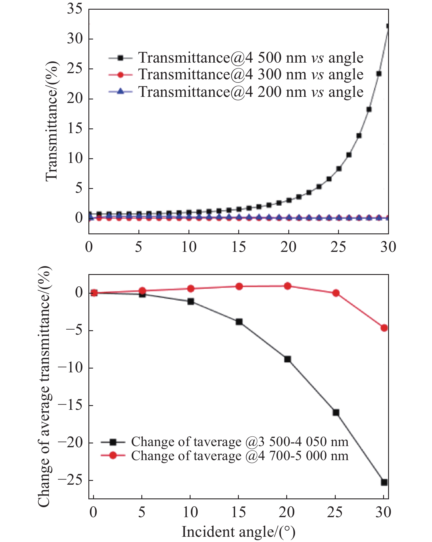 为了有效抑制4.3 μm CO2辐射对3 μm~5 μm中波红外目标信号的干扰,基于Needle随机插层优化算法,采用电子束蒸发方法,建立了石英晶振监控方式下多层超厚Ge/Al2O3薄膜生长误差的精确反演修正模型,实现了中波红外陷波滤光片的设计、精确反演与制备;同时,针对中波红外陷波滤光片存在的面型变化大的问题,采用预置基底面型方法,实现了中波红外陷波滤光片低面型调控。研究结果表明:随着镀膜时间的增加,高折射率Ge膜具有较好的生长稳定性,而低折射率Al2O3薄膜材料沉积比例因子变化高达11.9%,且呈规律性渐变趋势;所制备的中波红外陷波滤光片在4.2 μm~4.5 μm波段区间平均截止透过率小于0.3%;3.5 μm~4.05 μm及4.7 μm~5.0 μm波段的平均透过率大于95%,镀膜后的面型被有效控制在较小范围;膜层具有较好的复杂环境适应性,成功通过了GJB 2485-95中牢固性、高温、低温、湿热等环境试验考核。