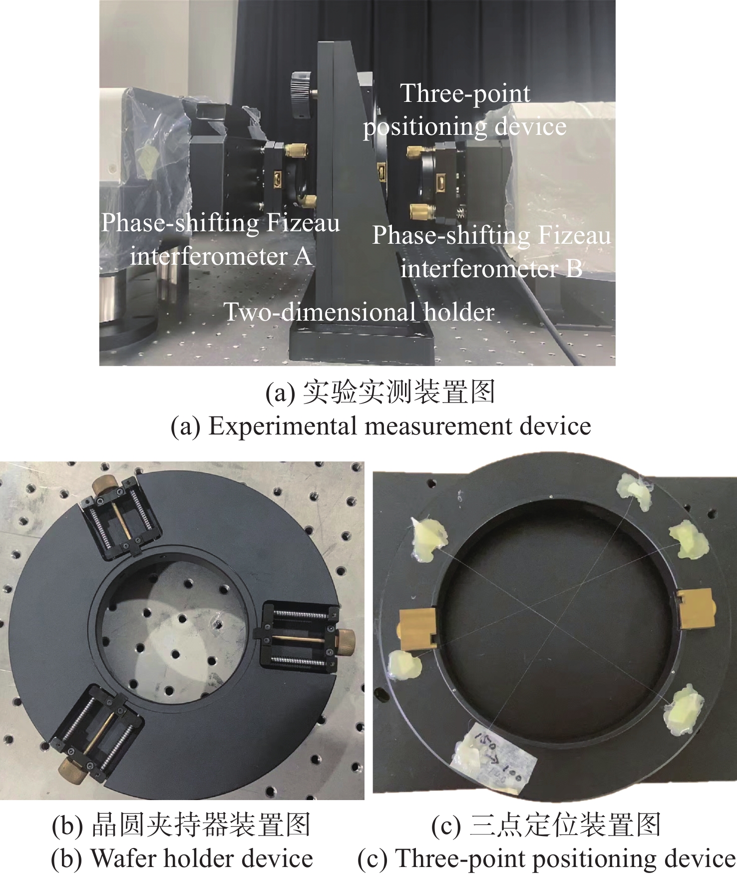 为了实现双面抛光晶圆总厚度变化(TTV)和变形程度中弯曲度(Bow)和翘曲度(Warp)的测量,提出了一种干涉测量方法。采用两个带有标准镜的菲索式相移干涉仪对晶圆正反面同时进行测量,将测量所得晶圆正反面形貌与未放置晶圆时两个干涉仪的空腔形貌进行组合运算,可得到不受标准镜误差影响的双面抛光晶圆的表面相关参数。在组合运算中,由于两个标准镜未精确对准会产生映射误差,影响相关参数的测量结果。针对这一问题,在晶圆测量之前,将三点定位装置固定在两个标准镜之间,基于三点定圆定理不断调整两个标准镜的位置,可使映射误差极小,进而减小映射误差对测量结果的影响。实验结果表明,50 mm晶圆横向和纵向的映射误差分别为21.592 μm和37.480 μm,TTV、弯曲度和翘曲度分别为0.198 μm、−0.326 μm和1.423 μm。为了进一步验证调整方法的有效性,采用单个干涉仪对晶圆进行翻转测量,由测量结果可知晶圆的TTV、弯曲度和翘曲度分别为0.208 μm、−0.326 μm和1.415 μm。所提干涉法在调整好两个标准镜的位置后,可以方便快速的用于大批量大尺寸晶圆的测量,提高了晶圆的检测效率,同时具有较高的测量精度。