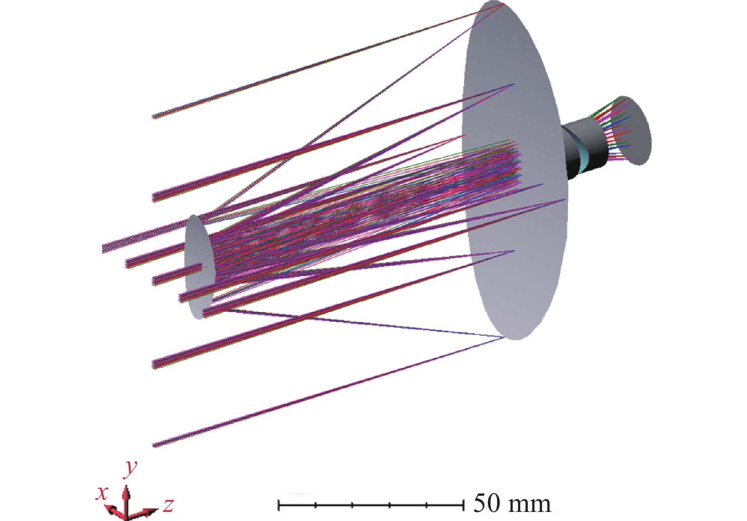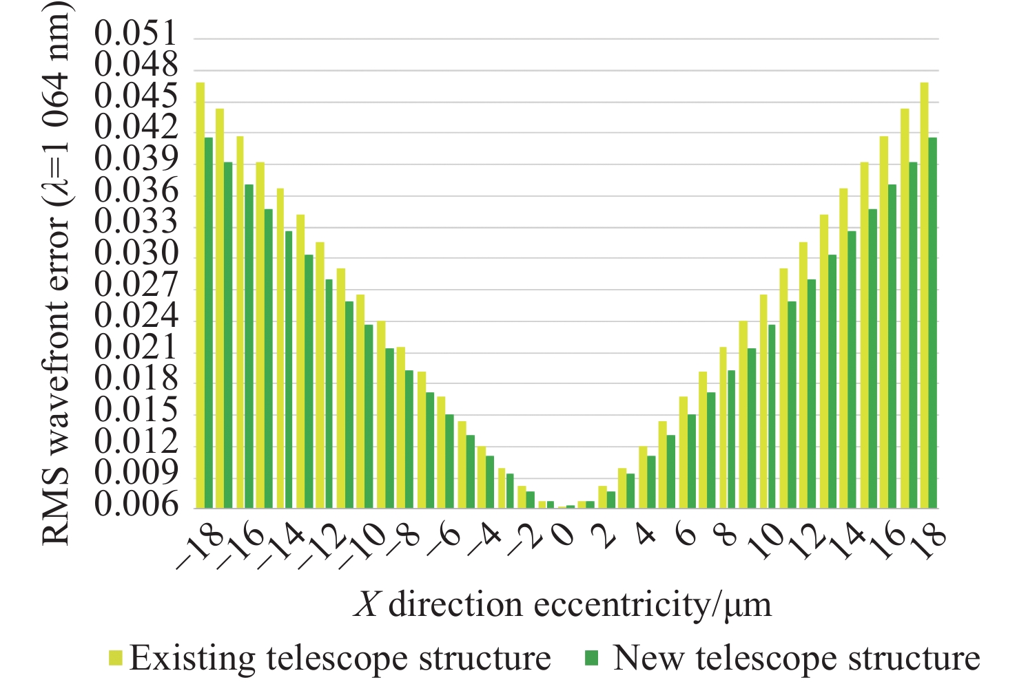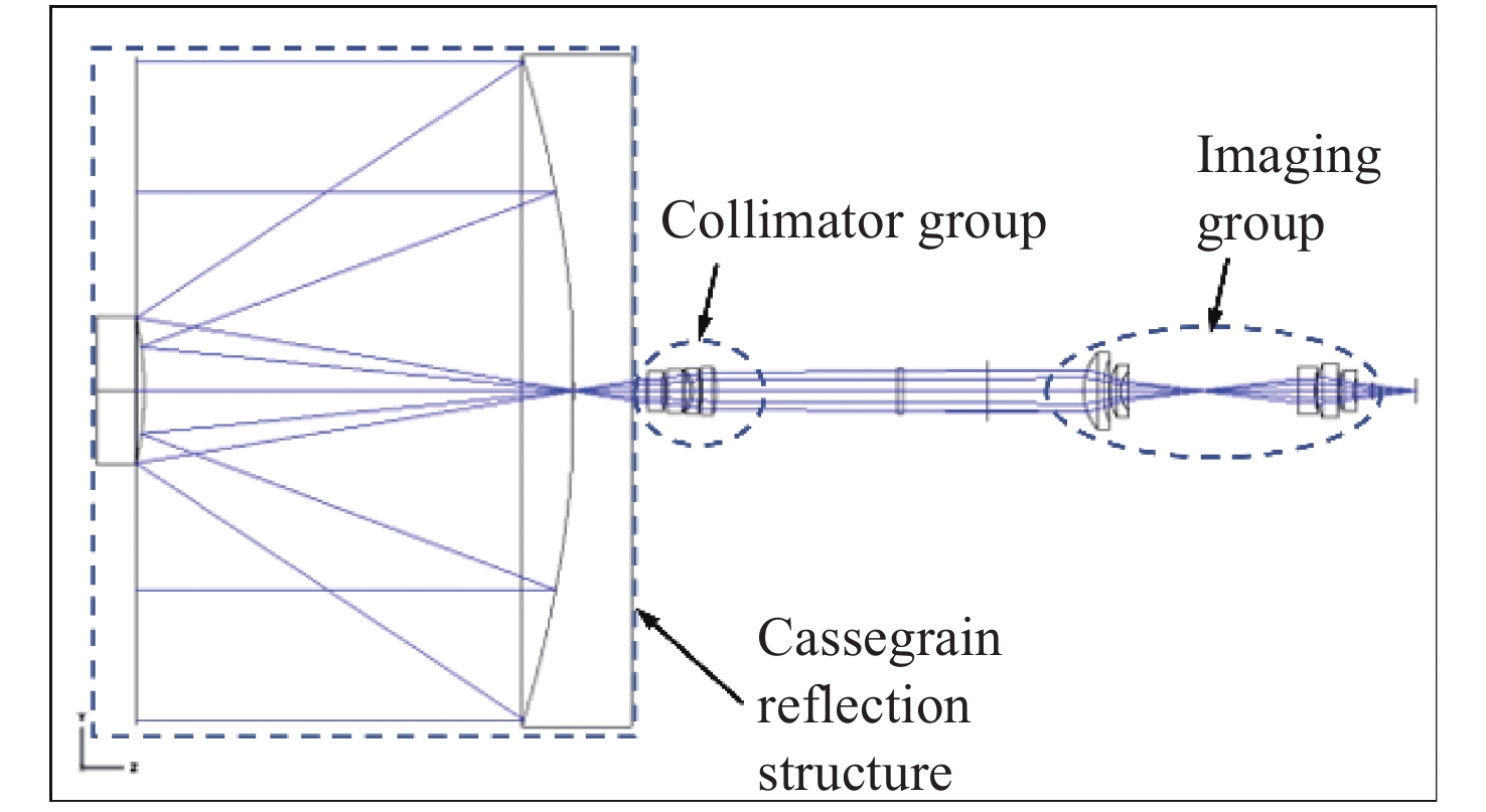 太极计划是中国探测空间引力波的一项重点任务。望远镜作为空间引力波探测中的重要组成部分,它的性能会直接影响引力波探测的精度。现有的典型空间引力波望远镜结构中次镜灵敏度高,难以满足更大口径的空间引力波望远镜对制造装调公差的要求,特别是在轨稳定性公差要求。为解决以上问题,首先,提出了一种中间像面设置于三四镜之间的新型空间引力波望远镜光学系统结构,以降低次镜灵敏度;结合高斯光学理论方法,从理论上分析并计算新型望远镜结构的初始参数。其次,通过优化设计,获得入瞳直径为400 mm,放大倍率为80倍,科学视场为±8 μrad,波前误差RMS值优于0.0063λ的望远镜光学系统。最后,建立了望远镜系统的灵敏度评价公差分配表,对比分析了现有望远镜结构与新型望远镜结构的公差情况。结果显示:相较于现有望远镜结构,新型望远镜结构的灵敏度降低了30.4%,具有低灵敏度优势,为空间引力波望远镜的设计提供了一种优选方案。