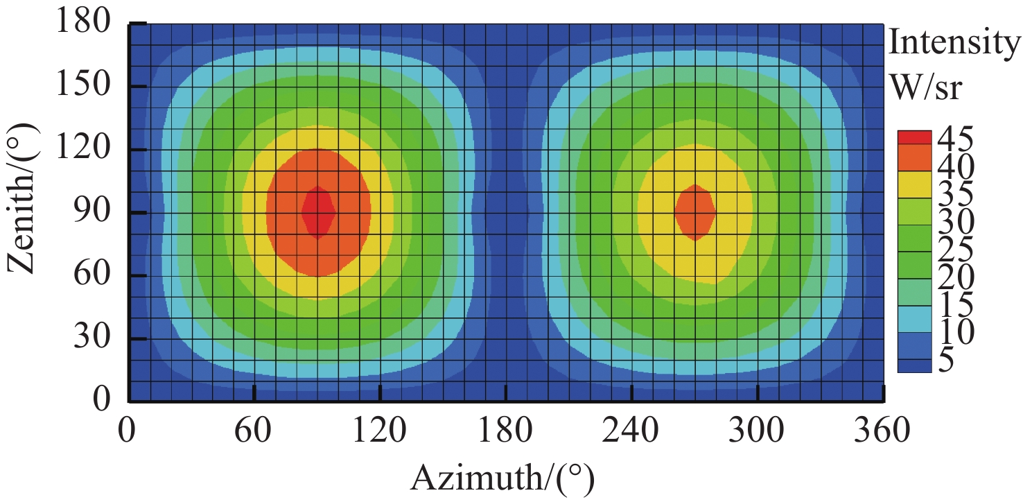 构建空间目标辐射特性对于发展空间态势感知技术具有重要意义。本文针对空间目标红外辐射特性,基于有限元方法,采用非结构四面体网格研制了仿真程序,通过矢量坐标变换,计算得到了目标各表面受到的轨道外热流,并结合表面材料和双向反射分布函数(BRDF)对目标各表面温度和红外辐射特性进行了仿真,并与文献结果进行了对比。进而考虑大气衰减和背景辐射的影响,对地基探测条件下升轨和降轨弧段的目标光谱辐射强度进行了分析。结果显示:对于三轴稳定太阳同步轨道沿飞行方向固定式帆板卫星,各表面在阳照区和地影区内温度变化范围较小;使用8~14 μm长波波段对目标进行观测的效果比3~5 μm中波波段好;辐射强度最大值在770 W/sr左右;地基红外光谱探测受大气影响较大,需要对探测波段进行优选。