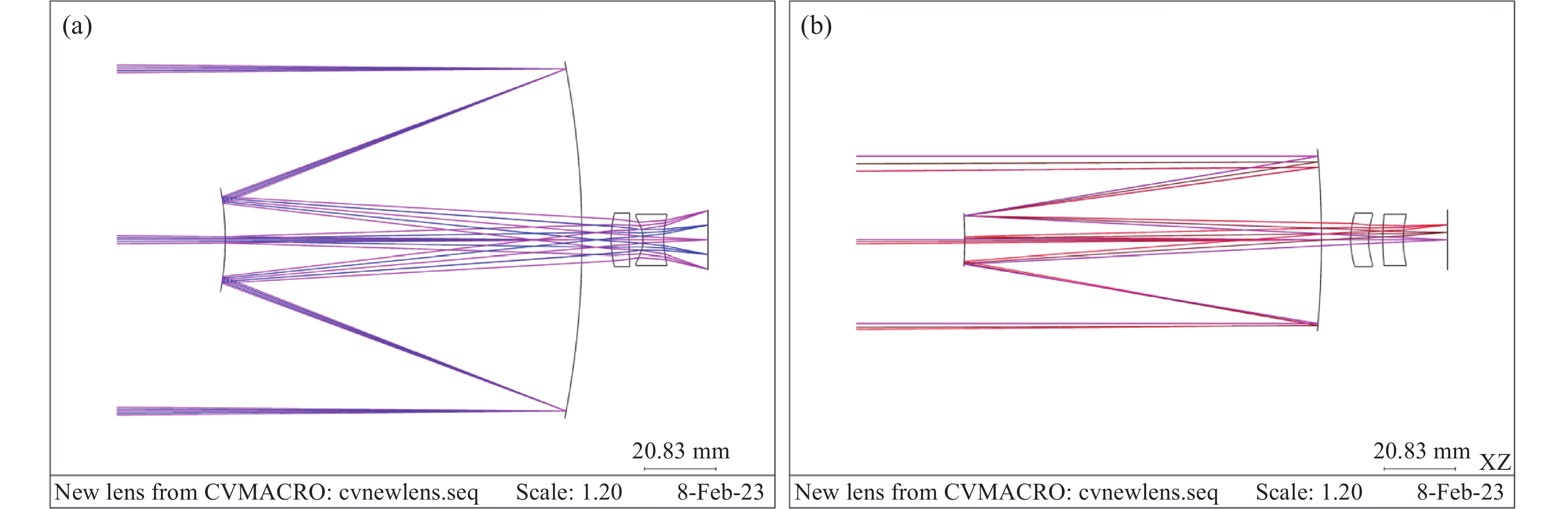变形光学系统具有双平面对称性,其在两个对称面内的焦距不同。利用变形光学系统能够在使用常规尺寸传感器的情况下获得更宽的视场。本文根据变形光学系统的一阶像差特性,提出了一种设计折反式变形光学系统的方法。使用双锥面(Biconic Surface)面型设计了一个折反式变形光学系统。系统在