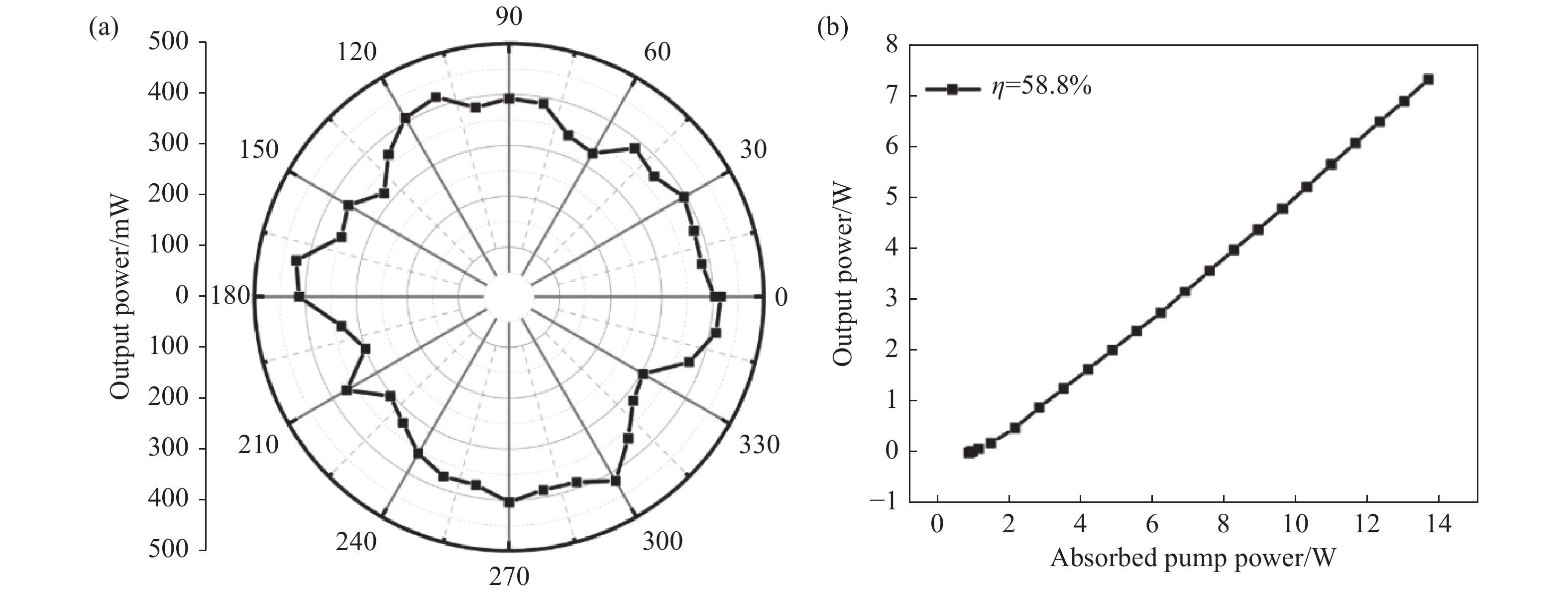 基于大增益带宽和高热导率晶体的偏振复用激光技术可以提高双频激光器和双光梳激光器在输出光谱范围和功率方面的性能。本文提出一种基于Yb:CALGO晶体的偏振复用激光器。将两片与光轴成45°角切割的双折射晶体放置在增益晶体的前后两侧形成三明治结构,利用双折射晶体的偏振特性使腔内激光形成只在三明治结构部分具备空间分离其余部分共线的偏振方向互相垂直的两种模式。同时,这种三明治结构既能使单束泵浦光能够自动分离为两束空间分离匹配的泵浦光,也可以使腔内增益晶体放置在腔内模式腰斑位置处,与泵浦光达到更好的模式匹配,提高光泵浦效率。最终测得的激光输出功率达到瓦量级并且斜率效率超过30%。在腔内加入标准具后,实现了频差为太赫兹量级的稳定双频激光运转。