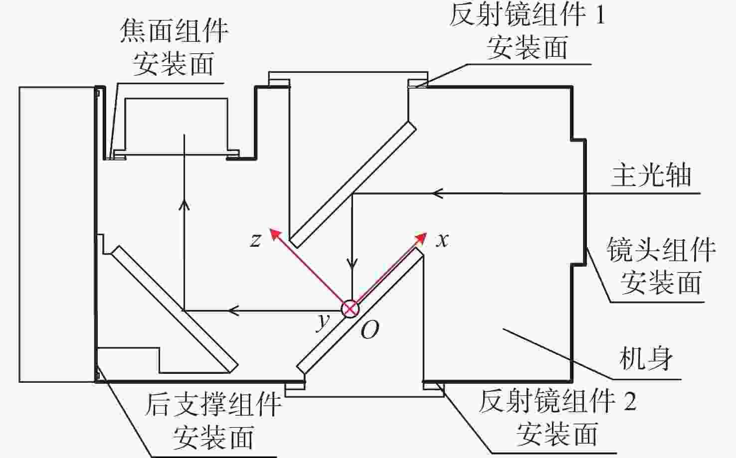 摘要: 利用平面反射镜进行光路折转以减小航空遥感器体积及质量是一种常用设计手段,而平面反射镜的引入对航空遥感器的装调工作提出了更高的要求。为此本文提出了一种用于航空遥感器平面反射镜系统的装调方法。利用坐标变换法建立经纬仪测量数学模型,推导出单个平面反射镜组件及平面反射镜系统角度偏差(俯仰偏差及方位偏差)与经纬仪测量值之间的对应关系。提出了利用经纬仪完成平面反射镜系统角度偏差测量及装调的方法。最终使镜头光轴与焦平面安装面法线的俯仰偏差和方位偏差均满足不大于2′的指标要求。应用该方法已完成10余套航空遥感器反射镜系统的装调,方法方便高效。同时,该方法可为各种光学仪器中平面反射镜角度标定及装调提供解决思路。Abstract: It is a common design method to reduce the volume and mass of aerial remote sensors by using the plane mirror to replace the light path. However, the introduction of a plane mirror puts forward stricter requirements for the alignment of the aerial remote sensor. We propose an alignment method for the plane mirror system of an aerial remote sensor. The mathematical model of the theodolite measurement is established by the coordinate transformation method, and the corresponding relationship between the angular deviation (pitch deviation and azimuth deviation) of the single plane mirror assembly and plane mirror system and the measured value of the theodolite is deduced. Then a method of measuring and adjusting the angle deviation of the plane mirror system with theodolite is proposed. Finally, the pitch angle deviation and azimuth angle deviation between the lens optical axis and the normal of the focal plane mounting surface meet the index requirements of being no more than 2′. More than 10 sets of aerial remote sensor plane mirror systems have been aligned using this method, which is both convenient and efficient. At the same time, this method can provide a solution for the angle calibration and alignment of the plane mirror in various optical instruments.