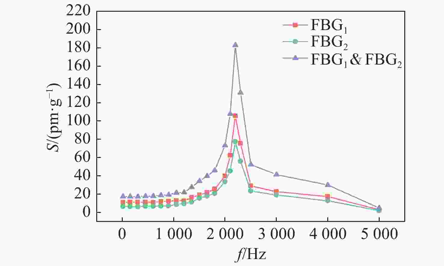 加速度/g 波长变化量/pm 标准差/pm 第一次 第二次 第三次 平均值 2 42.01 42.37 44.73 43.04 1.48 6 130.60 130.36 134.71 131.89 2.45 10 213.68 217.52 217.53 216.25 2.22 14 301.16 295.53 300.51 299.07 3.08 18 371.33 378.76 385.35 378.48 7.01 22 460.05 457.72 462.66 460.14 2.47 26 538.20 538.20 527.20 534.53 6.35 30 632.40 640.91 626.22 633.18 7.38 表 3 FBG加速度传感器的结构性能对比