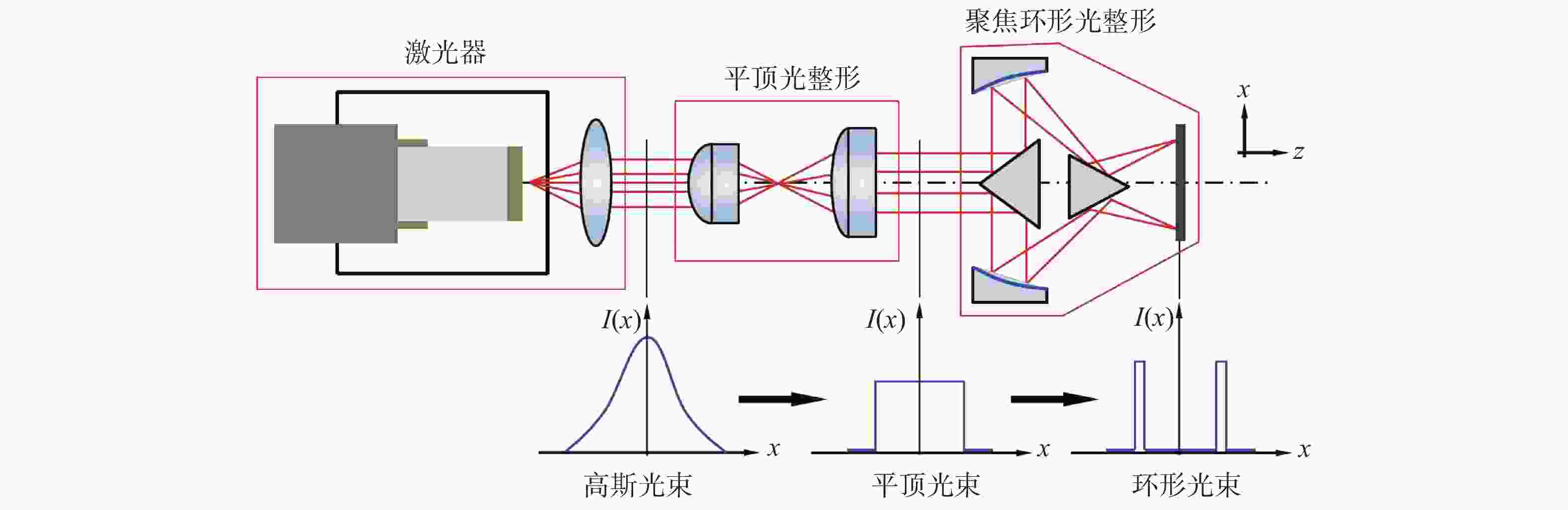 为了产生半径可自由调控的聚焦环形激光且确保离焦后光束强度仍均匀,本文提出一种透射-反射式组合的环形光光学系统设计方法。对于透射式系统,基于等能量分割原理,建立入射光与出射光投射高度的映射函数,优化透镜的各项参数,将入射的高斯光先整形成平顶圆形光,实现光束强度均匀化。反射式系统通过调整焦面环形光直径调控范围、工作距离等参数,结合几何光线追迹原理,计算圆锥反射镜、抛物柱面镜及动镜的各项参数,将平顶圆形光再整形成环形光。实验结果表明:当动镜半顶角为16°时,所设计系统能够实现聚焦环形光半径在15~30 mm范围的自由调控,尺寸误差不超过0.05 mm,离焦后强度均匀度达到84%。该设计方法无需更换系统镜片即可兼顾强度均匀性和尺寸自由度,可操作性好,产生的环形光加工精度和效率更高。