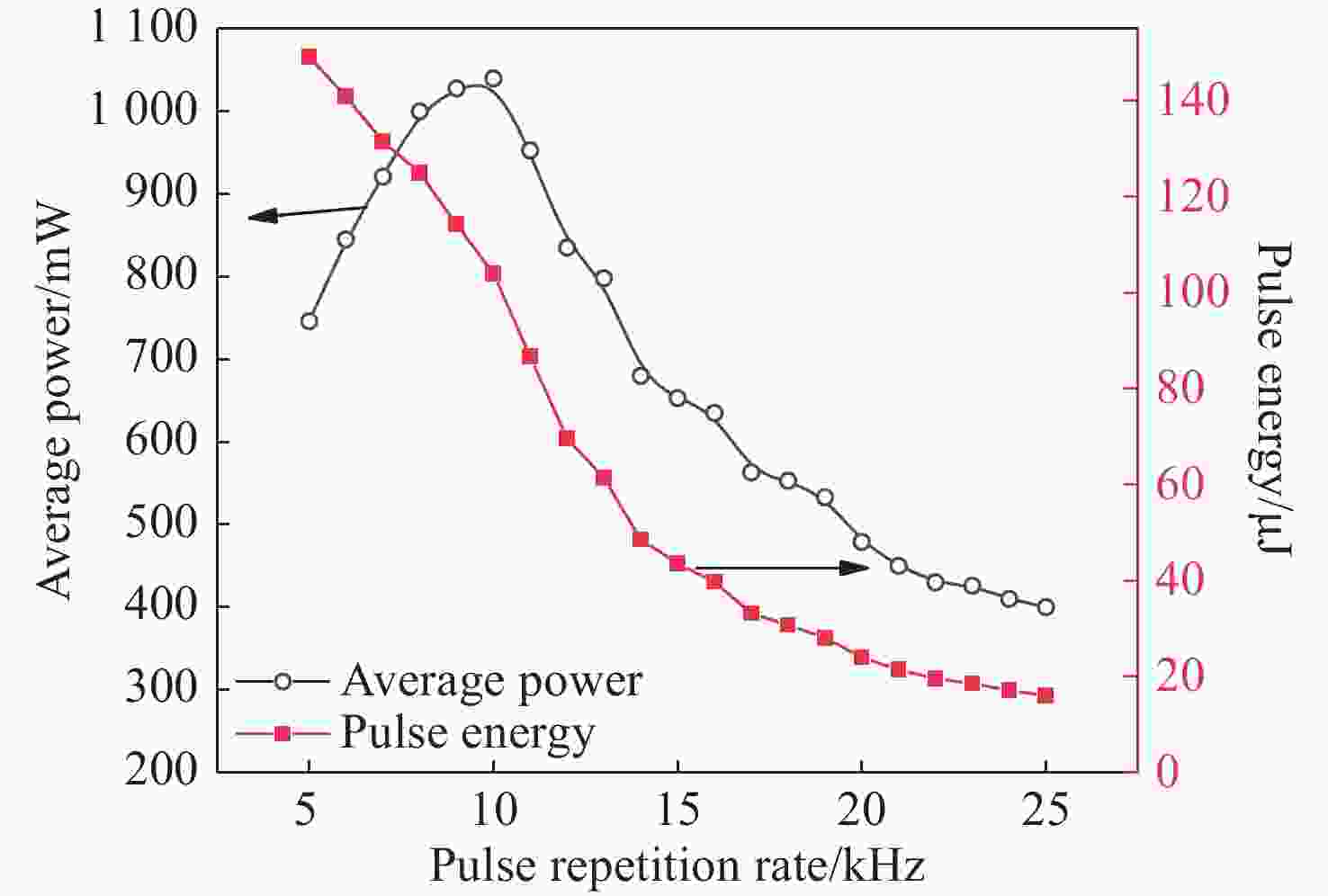 Figure 6.  Average output power and pulse energy varying with pulse repetition rate for 914-nm laser