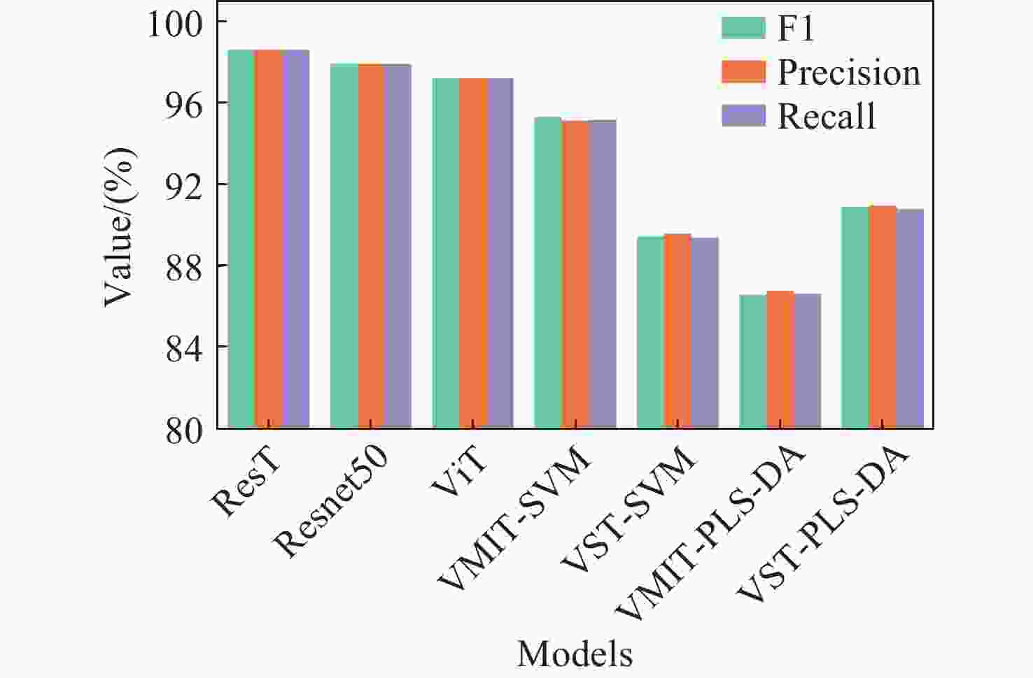 (%) 模型 训练集准确率 预测集准确率 正常 粒化 总体 正常 粒化 总体 ResT 100.00 100.00 100.00 99.01 97.67 98.61 Resnet50 100.00 100.00 100.00 98.02 97.67 97.92 ViT 100.00 98.61 99.53 98.02 95.35 97.22 -