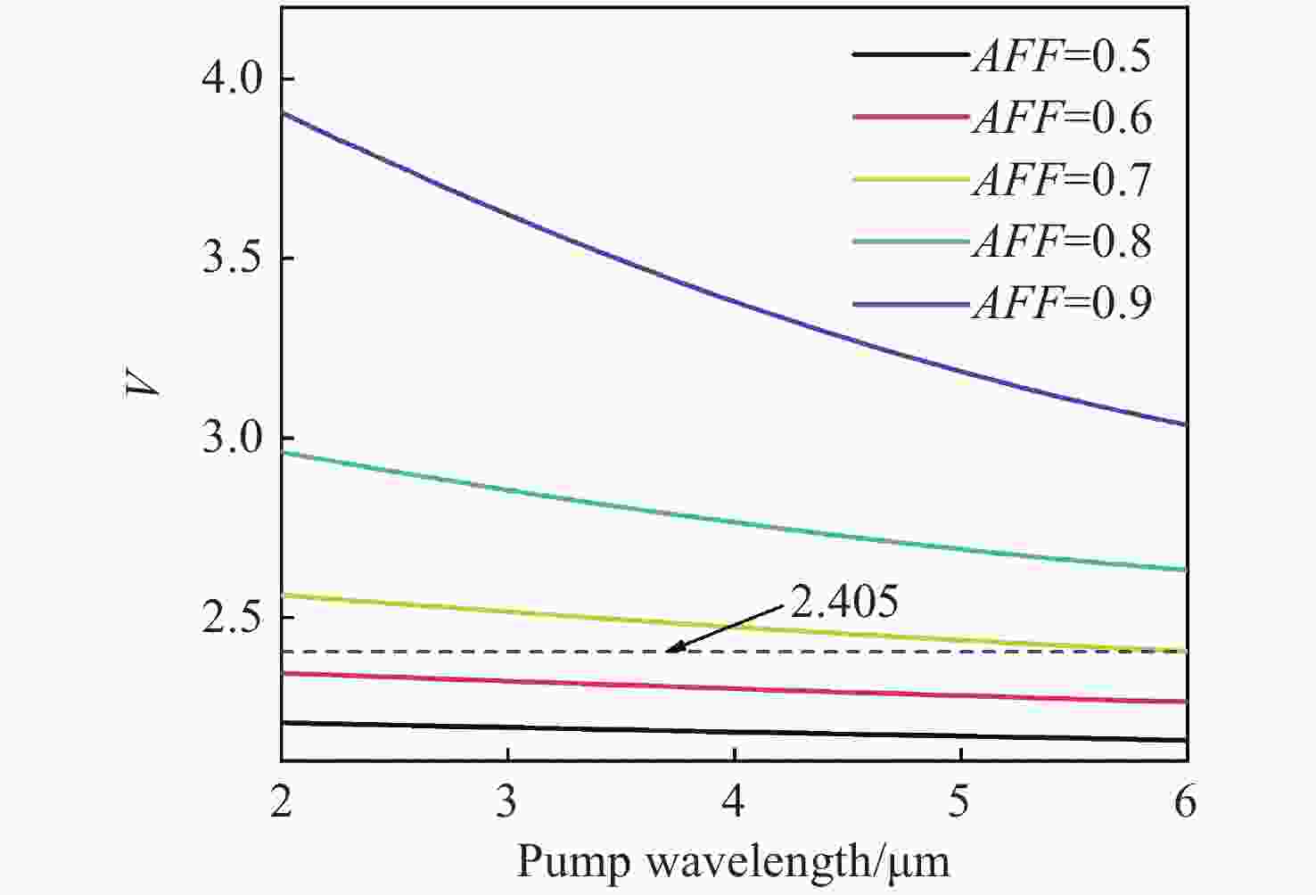 Figure 5.  The normalized frequency V versus pump wavelengths at different AFFs