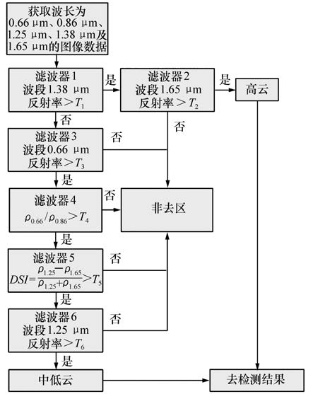 To improve the effectiveness of remote-sensing image data, a cloud detection method based on the reflectivity of hyperspectral remote image is proposed. According to the characteristic of the reflectivity between different earth background, image data of five specific wavelengths are chosen, then high-cloud area and low-cloud are determined by judging the threshold of different spectrum. The object cloud area can be obtained by combining the high-cloud and low-cloud areas. The experiment result indicates that the accuracy of cloud detection is more than 90%, while false alarm ratio is less than 1%, which proves that the cloud area can be accurately identified from multiple types of earth background.