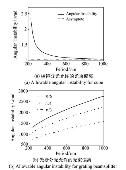 The beamsplitter has a critical role in the interference lithography, which splits one laser beam into two, therefore these two waves can interfere to produce the fringes. The instability of the interference lithography, which is determined by the selection of the beamsplitter, not only decreases the contrast of the patterns, but also causes the phase distortion, high scatter light and low quality of the groove. To improve the stability of the interference lithography system, based on the period equation of the fringes and the correction between deviation of the incidence and the interference beam angular variations(2<em>θ</em>), we discuss the phase distortion due to the alignment error of cube and the grating beamsplitter, and analyze the stability of the two different interference lithography system. Results indicate that in the grating manufacture, using the grating as the beamsplitter instead of the cube beamsplitter can increase the stability of lithography system by 5 to 6 orders of magnitude, which has a significant effect on grating fabrication with long-time exposure.