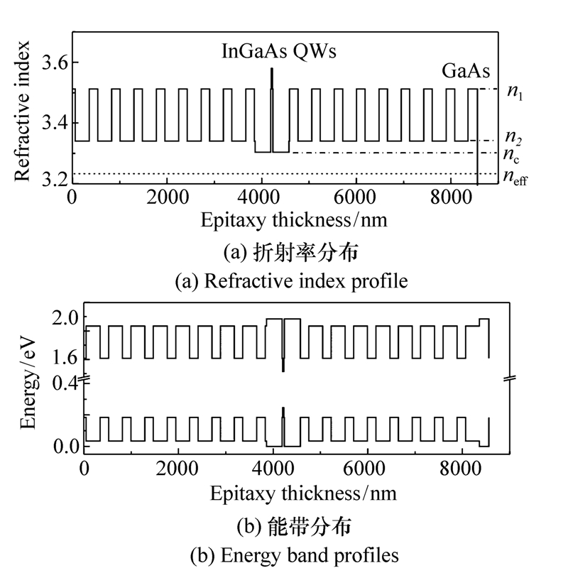 High power diode lasers are widely used for pumping of solid state lasers and fiber lasers, material processing, medical treatment, sensors, free-space optical communication, security and defense. However, the conventional diode lasers usually suffer from a large far-field divergence and strongly elliptical beam, which limit the direct applications. To improve the divergence, diode lasers based on Bragg reflection waveguide(BRW) are studied in this project, which utilizes the photonic bandgap(PBG) effect rather than the total internal reflection(TIR) to provide optical confinement. Several kinds of BRW lasers(BRLs) with different structures are designed and fabricated. First, the mode dispersion equation of the BRW is solved by the transfer matrix method and Bloch theory. The further analysis shows that the far-field distribution of BRW is determined by the mode shape in the cavity. In the case of Bragg form of PBG guidance, the optical field characteristics of a quarter-wave BRL and a single-sided BRL are studied. The essential reason affecting the far-field distribution is investigated. Finally, a twin-beam laser based on BRW is designed and demonstrated. Almost all the emission power of this laser is concentrated in two near-circular lobes in the vertical direction. The full-width at half maximum(FWHM) divergence angles of one beam are as narrow as 7.2° and 5.4° respectively in the vertical and lateral direction. Furthermore, the high brightness BRL with a ultra-narrow circular output beam is demonstrated by controlling the defect layer. The ultra-low vertical divergence of 9.8° with 95% power content and 4.9° with the FWHM definition is realized. The maximum output power exceeds 4.6 W under continuous-wave operation at room temperature. The narrow circular beam emission from the BRL can greatly improve the pumping efficiency and optical fiber coupling efficiency without expensive beam shaping. It is believed that the BRLs have a promising application prospect.