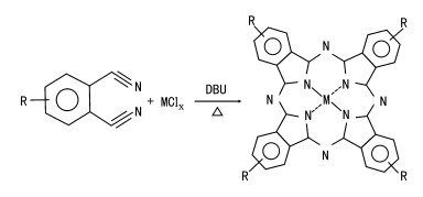 In order to effectively resist the threat of hyperspectral imaging and reconnaissance and achieve "the same spectrum and color" of camouflage paint and plants, based on the similarity between phthalocyanine and chlorophyll porphyrin structure, the synthesis of phthalocyanine compounds and the fitting of plant spectral features are carried out. The planar phthalocyanine structure of the electron-withdrawing substituent and the divalent transition center ion is constructed. The phthalocyanine compounds are synthesized by DBU catalysis and self-made synthesis equipment. The optimal synthesis conditions and purification methods are investigated. The absorption and reflectance spectra of the products are tested by spectrophotometer to study the influence of central ion and aggregation on the spectral properties of phthalocyanine compounds. The experimental results show that the reaction time of tetranitrometal phthalocyanine is the shortest at 240~250℃ under the action of catalyst; cobalt phthalocyanine has a sharper absorption peak than the phthalocyanine product formed by iron, zinc, copper and other centrally substituted ions, which is more similar to the green plant spectral curve; the spectral reflection curve of the phthalocyanine compound shifts with the influence of temperature, purity and dispersion state on the product aggregation state. The absorption spectrum of tetra-nitro cobalt phthalocyanine synthesized at 220~240℃ for 20~30 min are in agreement with the Q band absorption characteristics of phthalocyanine compounds, and its peak wavelengths are matched with the plant spectrum. It provides new methods and new approaches for the application of phthalocyanine pigments in the fields of military, textile, dye and bionic etc.