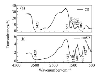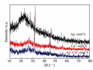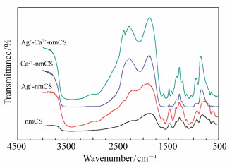 In order to improve the water soluble and the hemostatic performance of chitosan (CS), chitosan is nano-sized and an antibacterial Ag+ and coagulation-assisted Ca2+ are introduced to prepare a nano-chitosan metal ion composite hemostatic material. Firstly, nano-chitosan (nmCS) is prepared by ion exchange method, and AgNO3 and saturated CaCl2 solution are added respectively to obtain nmCS-Ag, nmCS-Ca and nmCS-Ag-Ca composites. Then, the structure of the composite is characterized by means of FTIR, XRD and SEM. Finally, the coagulation and hemostatic properties of the complex are tested. The results show that the characteristic absorption peak of nano-chitosan sodium salt appeared at the modified chitosan IR spectrum at 1 647 cm-1 and 1 560 cm-1. The nano-chitosan composited with metal ions show the crystal characteristics of Ag+ and Ca2+ in the XRD pattern. The SEM shows that partial Ag+ precipitates in nmCS-Ag, and the composite effect of nmCS-Ca is better. The coagulation and hemostasis of nmCS-Ag-Ca is better than that of nmCS-Ag and nmCS-Ca, while the coagulation and hemostasis of nmCS-Ag and nmCS-Ca are better than that of nmCS. The test results show that the nano-chitosan metal ion composite hemostatic material has been successfully prepared.
