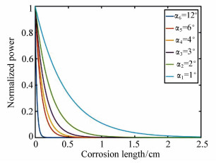 In fiber lasers, there are cladding lights with different transmission angles. In order to study the stripping effects of corroded cladding light strippers(CLS) on cladding light at various angles, we measured the scattering coefficient of the corroded section of the fiber. Meanwhile, we also simulated the relationship between the attenuation and the corrosion length of the cladding light at different transmission angles. To produce cladding light at different angles, we built two sets of stripper test systems:one to test the CLS made of double-clad fiber and one to test the coreless fiber. In the double-clad fiber experiment, the maximum transmission angle of the two-system cladding light was changed from 10° to 3°12' and from 8° to 3°1'. These angles deviate from the maximum transmission angle of light in the core by 2°27'. In the coreless fiber experiment, the maximum transmission angle of the two-system cladding light was changed from 11° to 2°9' and from 8° to 2°12'. The maximum transmission angle approaches 0° as the cladding light attenuation increases. Finally, we tested the corroded cladding light stripper made of double-clad fiber on the tandem-pumped laser with a wavelength of 1 018 nm. The cladding light attenuation was 18.3 dB at an input power of 1 136 W.