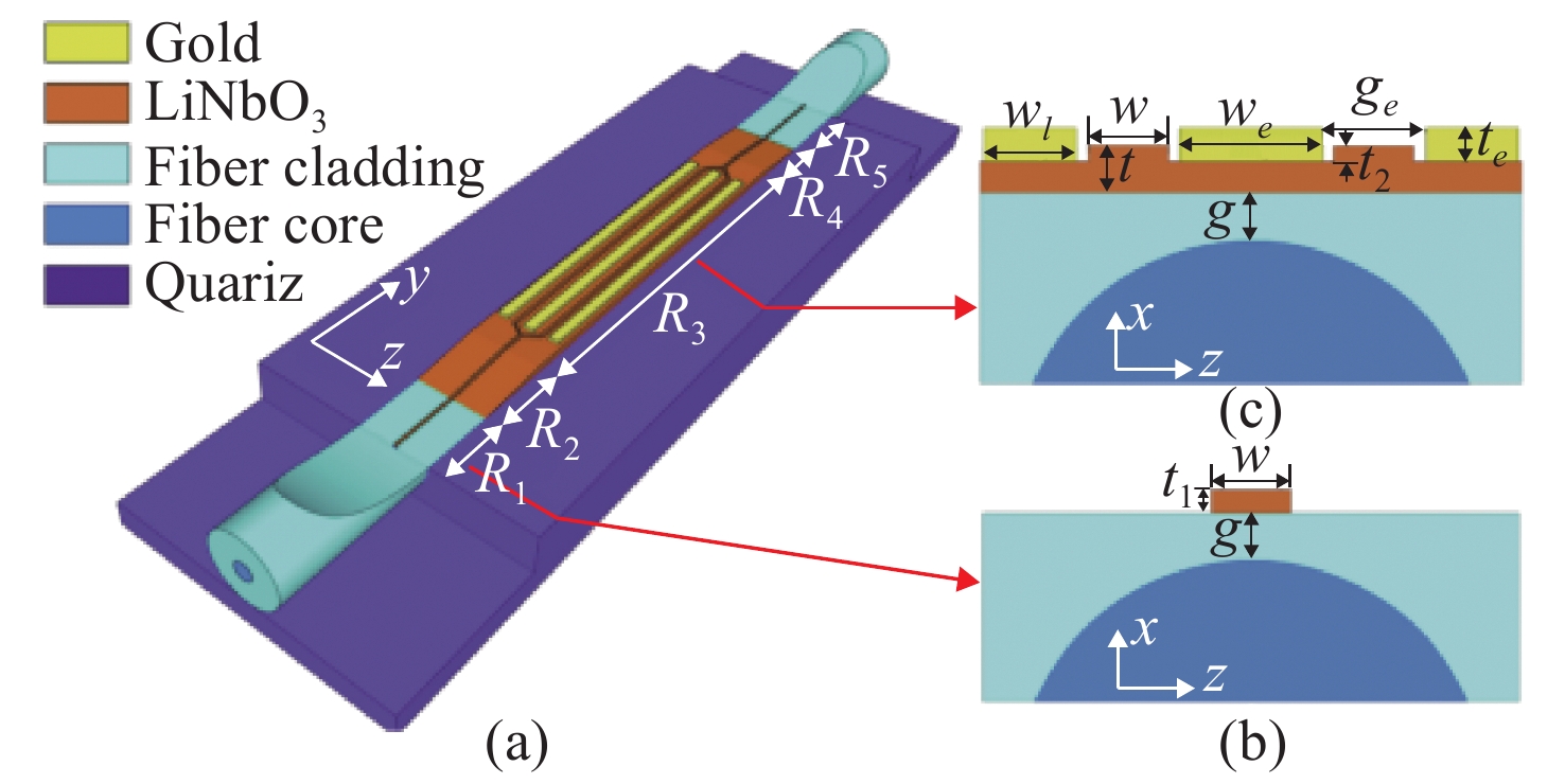Electro-optic modulators based on lithium niobate (LiNbO3, LN) thin-film platforms are advantageous for their small volume, high bandwidth and low half-wave voltage. They have important application prospects in the field of optical fiber communication and optical fiber sensing, and thus have became a heavily researched topic in recent years. In this paper, the research progress of the waveguide structures, coupling structures and electrode structures of LN thin-film modulators are reviewed in detail. The fabrication process of a LN thin-film waveguide is summarized, and the performances of different modulator structures are analyzed. Based on SOI and LNOI, a platform modulator is realized with VπL<2 V∙cm, a bilayer inversely tapered coupling scheme achieves a coupling loss <0.5 dB/facet , and a traveling wave electrode structure achieves a modulation bandwidth >100 GHz. Thin-film LN modulators are better than commercial LN modulators in most aspects. It can be predicted that in the near future, with the further improvement in waveguide technology, thin-film LN will become a popular scheme of LN modulators. Finally, the potential directions for the future of their research are proposed.