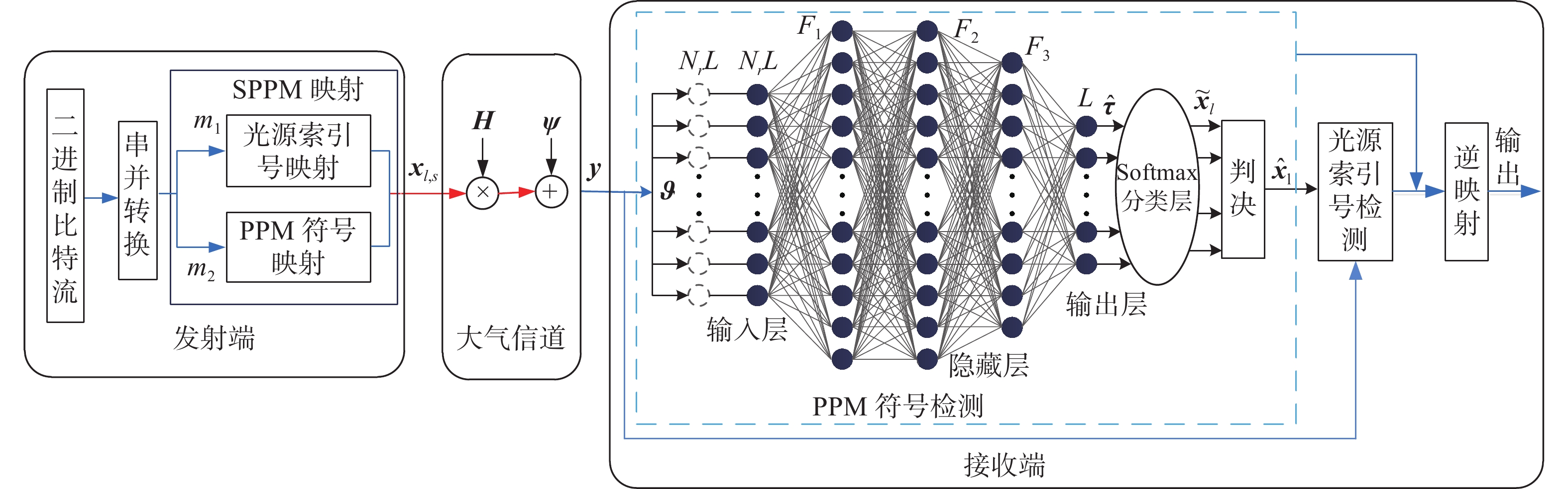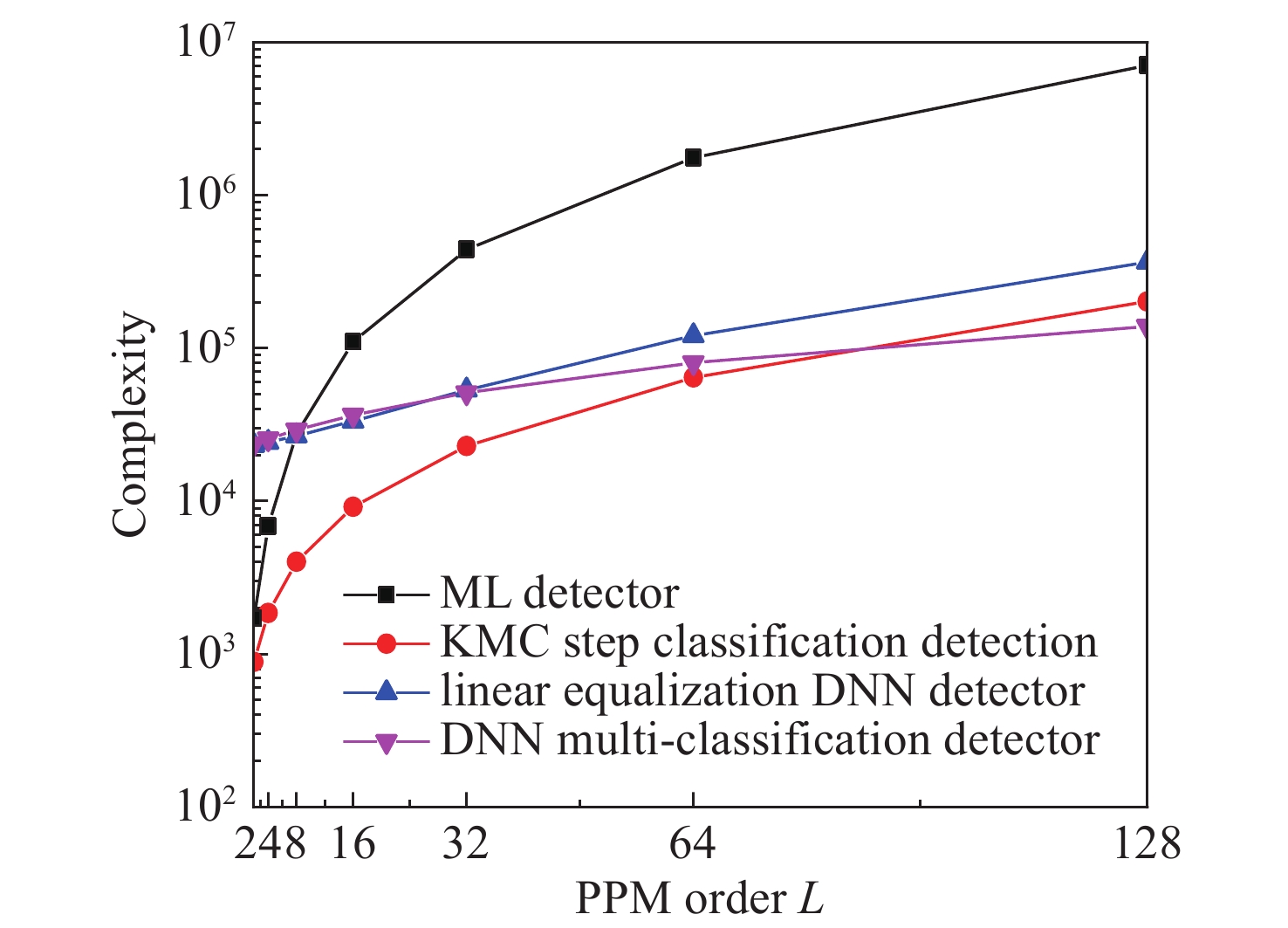 In order to effectively avoid high computational complexity when using Maximum Likelihood (ML) detection, a deep learning-based Spatial Pulse Position Modulation (SPPM) multi-classification detector is proposed by combining a Deep Neural Network (DNN) and step detection. In the detector, the DNN is used to establish a non-linear relationship between the received signal and the PPM symbols. Thereafter, the subsequent received PPM symbols are detected according to this relationship, so as to avoid the exhaustive search process of PPM symbol detection. The simulation results show that with the proposed detector, the SPPM system approximately achieves optimal bit error performance on the premise of greatly reducing detection complexity. Meanwhile, it overcomes the error platform effect caused by K-Means Clustering (KMC) step classification detection. When the PPM order is 64, the computational complexity of the proposal is about 95.45% and 33.54% lower than that of ML detectors and linear equalization DNN detectors, respectively.