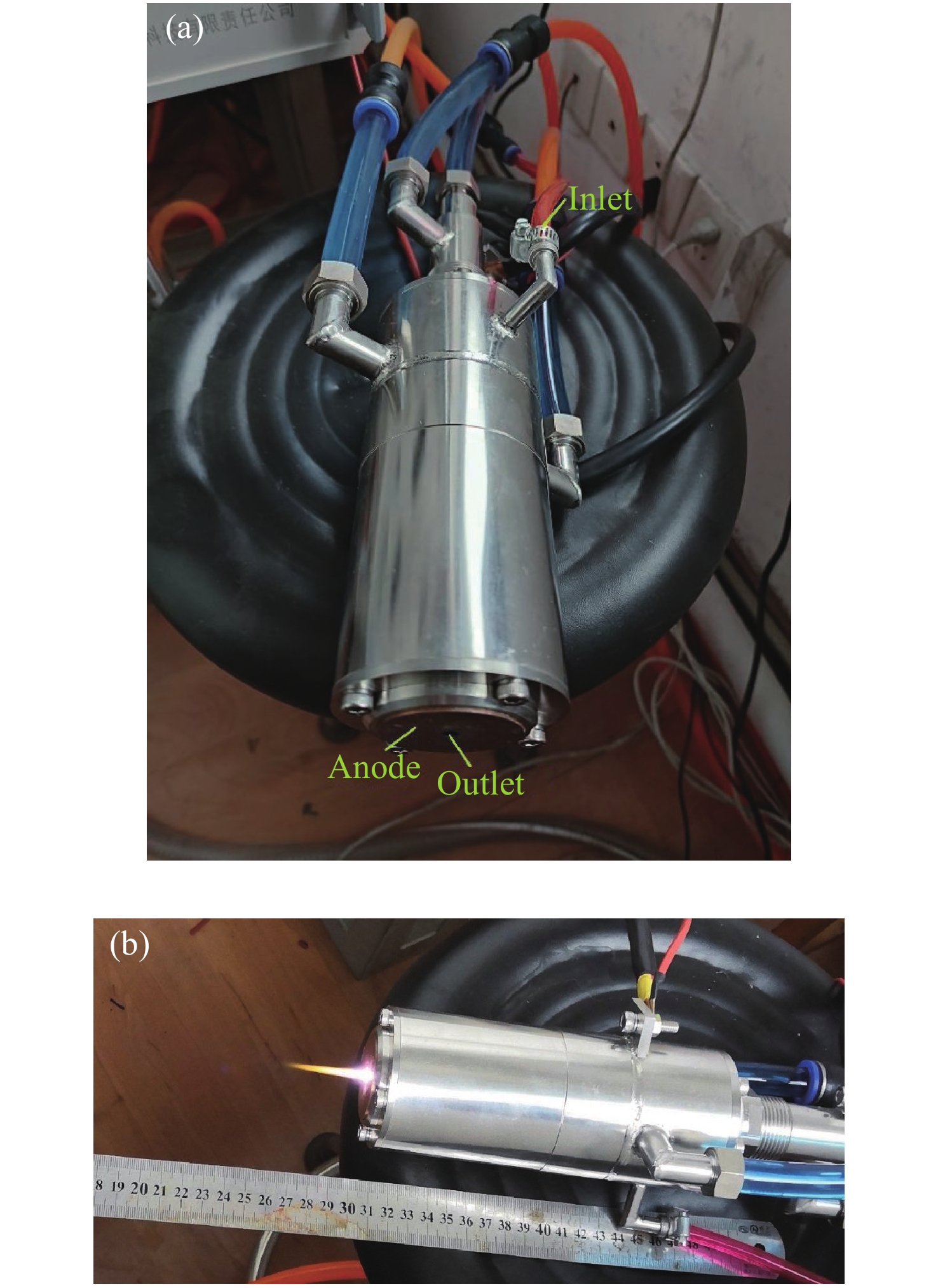 At present, the simulation research of arc actuators is limited to only obtaining the working characteristics of the plasma generated by the actuator, such as potential, pressure, temperature and velocity, while the plasma state is limited to only diagnosing its electron temperature and electron density by spectrum. The two are separated. This paper attempts to unify the two. Therefore, the arc jet plasma actuator designed here adopts the finite element method to solve the nonlinear multi physical equations. The working characteristics of the arc jet plasma actuator are numerically simulated, and the potential, pressure, temperature and velocity distributions inside the actuator are obtained. On this basis, the electron density is calculated and the simulation calculation model of the plasma state (electron temperature and electron density) of the actuator is obtained from the working condition of the actuator. Then the spectral diagnosis of the jet plasma is carried out by using the emission spectral diagnosis method, and the electron density of plasma is calculated by using the intensity ratio method of discrete spectral lines. The diagnostic experiment of the arc plasma actuator shows that the maximum electron temperature is 10505.8 K and the maximum electron density is 5.75×1022 m−3. For the plasma electron temperature and plasma density under different working conditions, the experimental and simulation results increase with the increase of inlet gas flow and discharge current. It shows that our simulation model of plasma state is reasonable and applicable for our miniaturized arc jet actuator with high jet velocity.