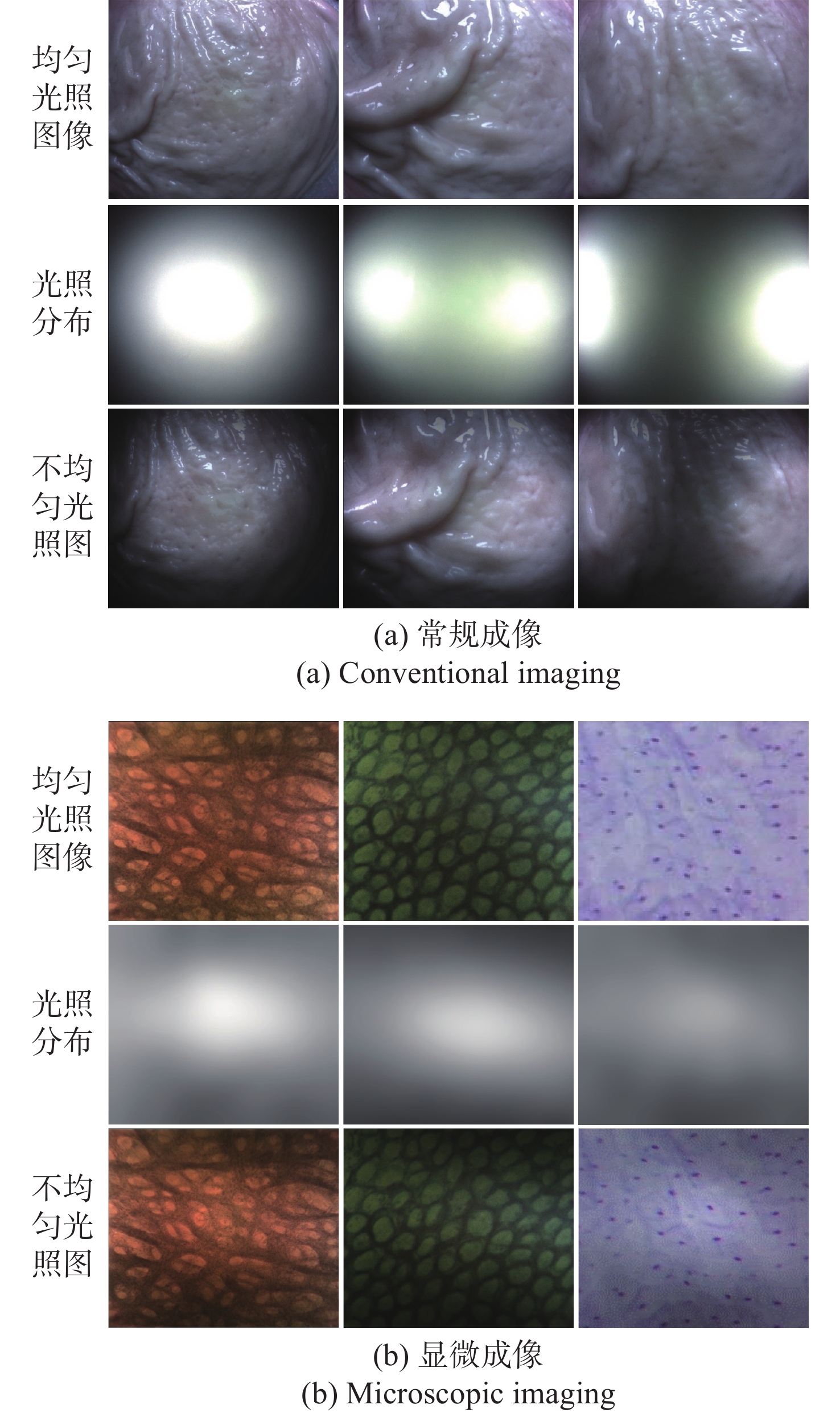 Cytoendoscopy requires continuous amplification with a maximum magnification rate of about 500 times. Due to optical fiber illumination and stray light, the image has non-uniform illumination that changes with the magnification rate, which affects the observation and judgement of lesions by doctors. Therefore, we propose an image non-uniform illumination correction algorithm based on the illumination model of cytoendoscopy. According to the principle that image information is composed of illumination and reflection components, the algorithm obtains the illumination component of the image through a convolutional neural network, and realizes non-uniform illumination correction based on the two-dimensional Gamma function. Experiments show that the average gradient of the illumination channel and the discrete entropy of the image are 0.22 and 7.89, respectively, after the non-uniform illumination correction by the proposed method, which is superior to the traditional methods such as adaptive histogram equalization, homophobic filtering, single-scale Retinex and the WSI-FCN algorithm based on deep learning.
