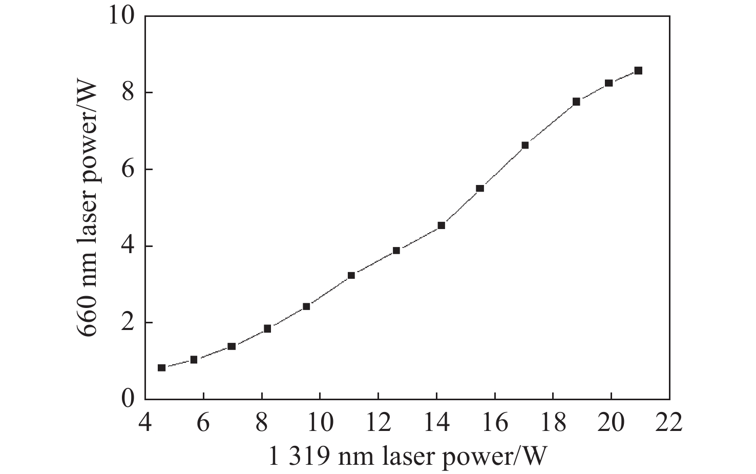 Red lasers with a picosecond pulse width are widely used in various fields such as industrial, medical, scientific research and information strorage due to their narrow pulse width and high peak power. This paper presents an all-solid-state laser, operating at 660 nm with picosecond pulse width, narrow band, and high conversion efficiency, which is demonstrated by the acousto-optic mode-locked (AOML) method. By optimizing the cavity and implementing external frequency doubling with two LiB3O5 (LBO) crystals along with various techniques, a mode-locked red laser source with a maximum output power of 8.6 W is developed. The laser operates in a pulsed side-pumped regime and contains the mode-locked pulses with a frequency of 100 MHz and a pulse width of 887 ps. The optical-to-optical conversion efficiency from 1319 nm to 660 nm can reach up to 41%.