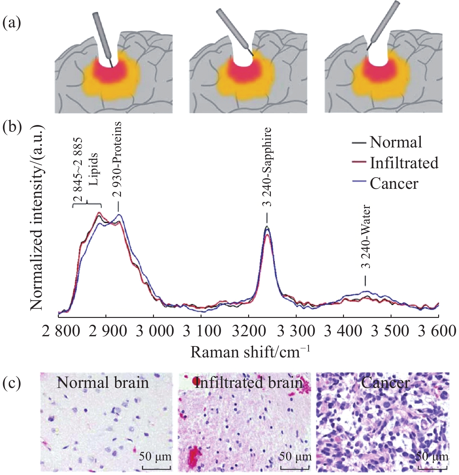 Brain glioma is a common type of brain tumor with a low cure rate and a high recurrence rate. Precise identification of tumor boundaries is an important prerequisite for reducing recurrence and improving prognosis. Developing a rapid, high-sensitivity and label-free diagnostic method is of crucial clinical significance regarding glioma. Raman spectroscopy can reflect substance’s chemical and structural information at the molecular level due to its fingerprint characteristics. It has already shown excellent prospects for the location and identification of glioma. Firstly, we introduce the different types of Raman spectroscopy technologies in this paper. Secondly, the research status of glioma diagnosis based on Raman spectroscopy is reviewed. Finally, the future development of glioma diagnosis through Raman spectroscopy is prospected.