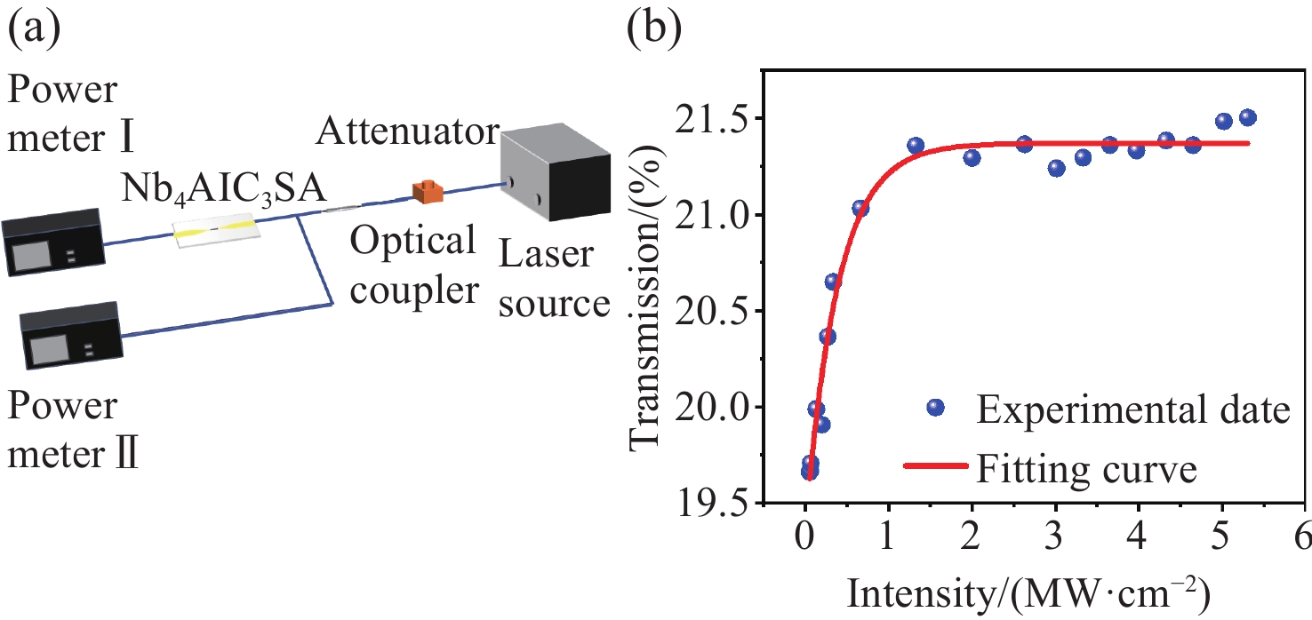 In this paper, a conventional soliton (CS) mode-locked erbium-doped fiber (EDF) laser was developed using MAX phase material (MAX-PM) Nb4AlC3 as a saturable absorber (SA). First, the liquid phase exfoliation (LPE) method was utilized to prepare Nb4AlC3 nanosheets, and then a piece of tapered fiber was adopted to fabricate Nb4AlC3-SA. It was found that the saturation intensity and modulation depth of the Nb4AlC3-SA are 2.02 MW/cm2 and 1.88 %. Based on the Nb4AlC3-SA, a conventional soliton (CS) mode-locked EDF laser was achieved. The central wavelength, pulse duration, and pulse repetition rate were found to be