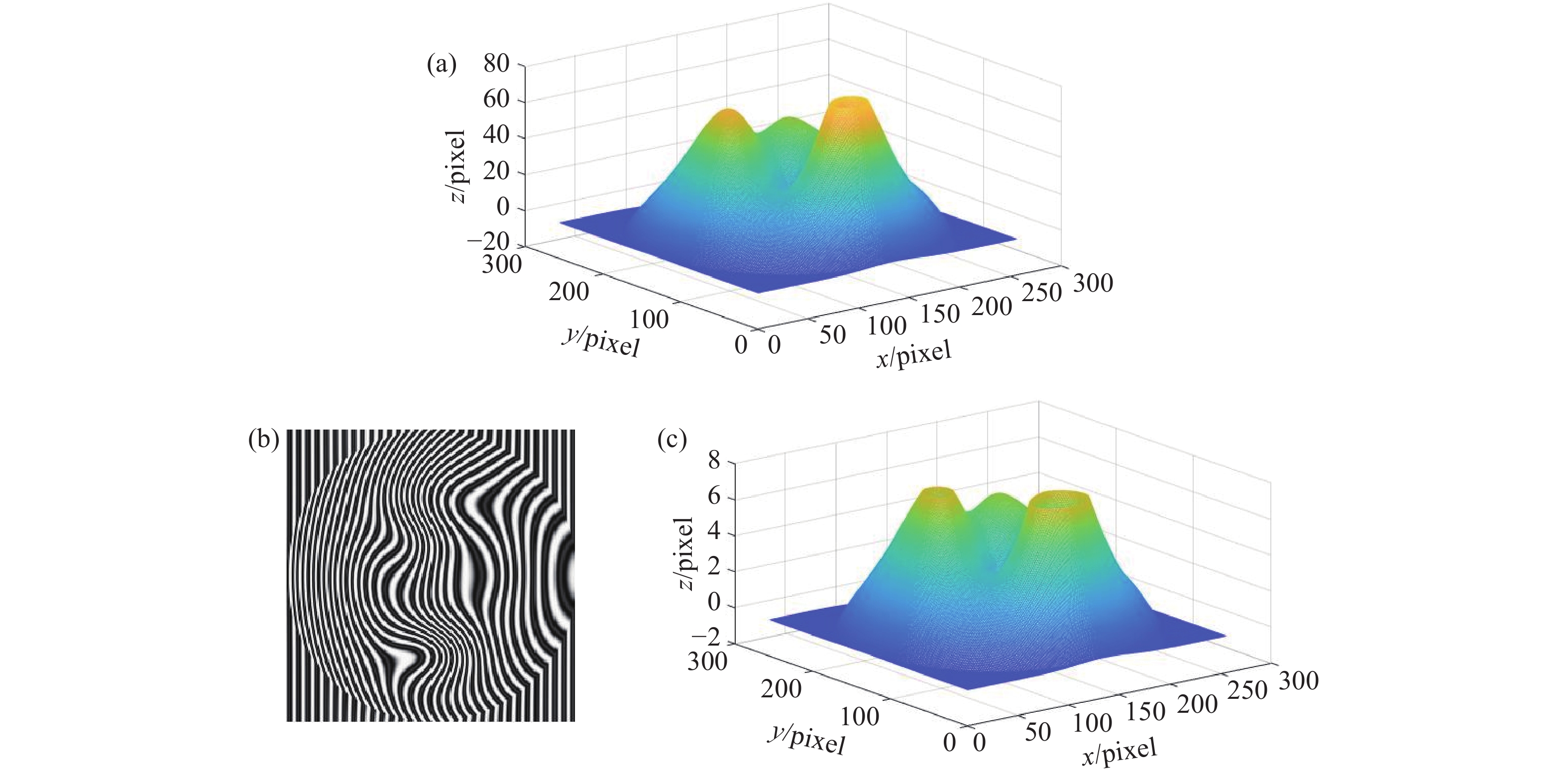 由于实际的离焦投影系统产生非线性效应,影响了相位测量精度,为此对二值条纹离焦投影的相位误差展开研究。基于该领域研究现状分析,给出了非线性系统中变形条纹图信号光强的分布表达式,分析了频谱中出现了高级频谱成份并与基频成份混在一起产生混叠现象的原因。采用了对投影仪进行离焦处理的方法滤除频谱中的高级频谱成份,过滤出其中的一个基频成份并进行逆傅里叶变换,得到空间域中的条纹光强表达式;采用相移算法与相位展开得到包含连续信号的连续相位,推导出了在实际测量中进行相位展开后的误差表达式。用仿真与实验验证了基本原理的正确分析,仿真结果表明,采用本文方法所得误差值分别为二值条纹离焦法的34.51%、参考文献[1]的44.83%、参考文献[10]的67.83%;实验结果表明,采用本文方法具有良好的相位恢复效果,且相对应的相位误差也比较小。