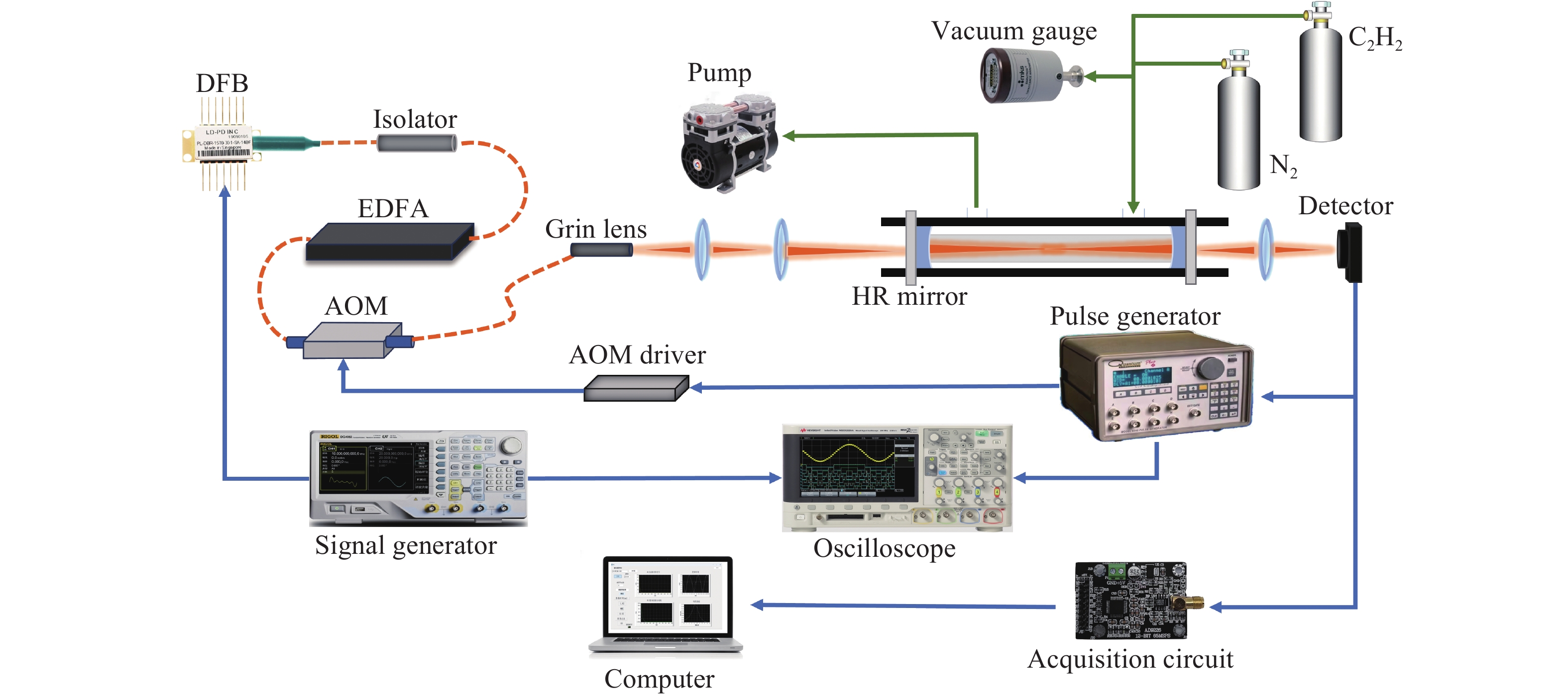 激光吸收光谱技术因具有高灵敏度、快速响应和实时在线检测等优势,在大气环境监测、工业生产、医疗诊断等领域得到广泛应用。谱线混叠干扰是激光吸收光谱技术面临的主要问题之一,针对该问题,本文提出了一种基于腔衰荡光谱(CRDS)的多谱线光谱分析方法,搭建了基于自主设计笼式结构的Fabry-Pérot腔的腔衰荡光谱(CRDS)气体检测系统,并选取乙炔(C2H2)在
