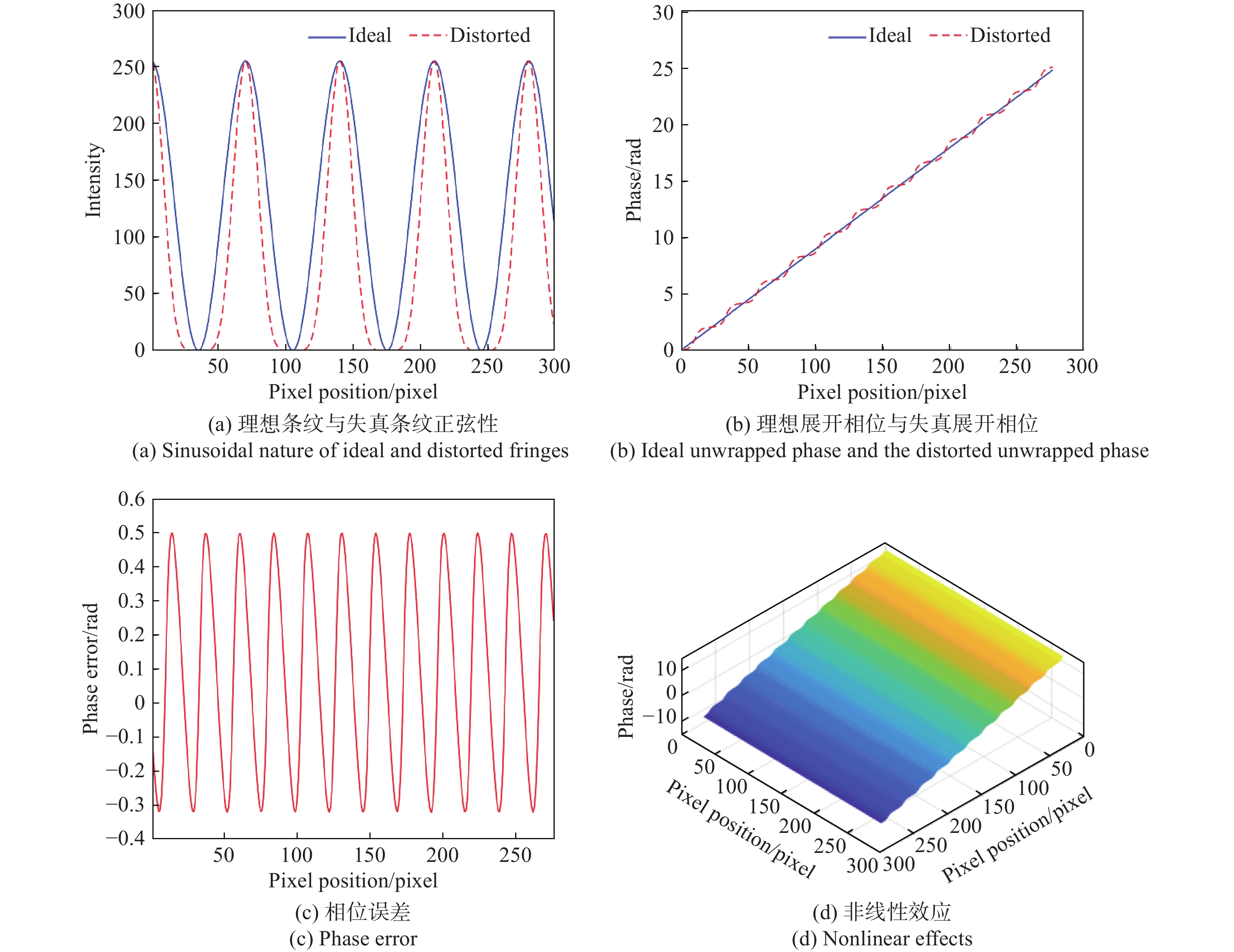 条纹投影技术在三维测量和表面形貌重建中得到广泛应用,其相位质量是决定测量精度的关键因素,而输入光强和输出光强之间的非线性效应是导致相位误差的主要来源之一。为了解决这一问题,本文提出了一种新的系统非线性主动校正方法。该方法首先通过对标准平面投影少量的均匀灰度图像,获取输入光强与输出光强的变化规律。然后,将这一规律与系统非线性主动校正相结合,建立了基于输入输出光强变化的系统非线性模型。接着,利用遗传算法求解最优编码值,从而通过条纹编码主动校正了投影条纹。经过校正后的条纹有效减少了非线性效应带来的影响,大幅提升了相位获取的质量。为了验证所提方法的有效性,以三步相移为例进行了计算机仿真。结果表明,标准误差降低了88%,最大误差减少了85.5%。在实际标准平面实验中,校正后标准相位误差由