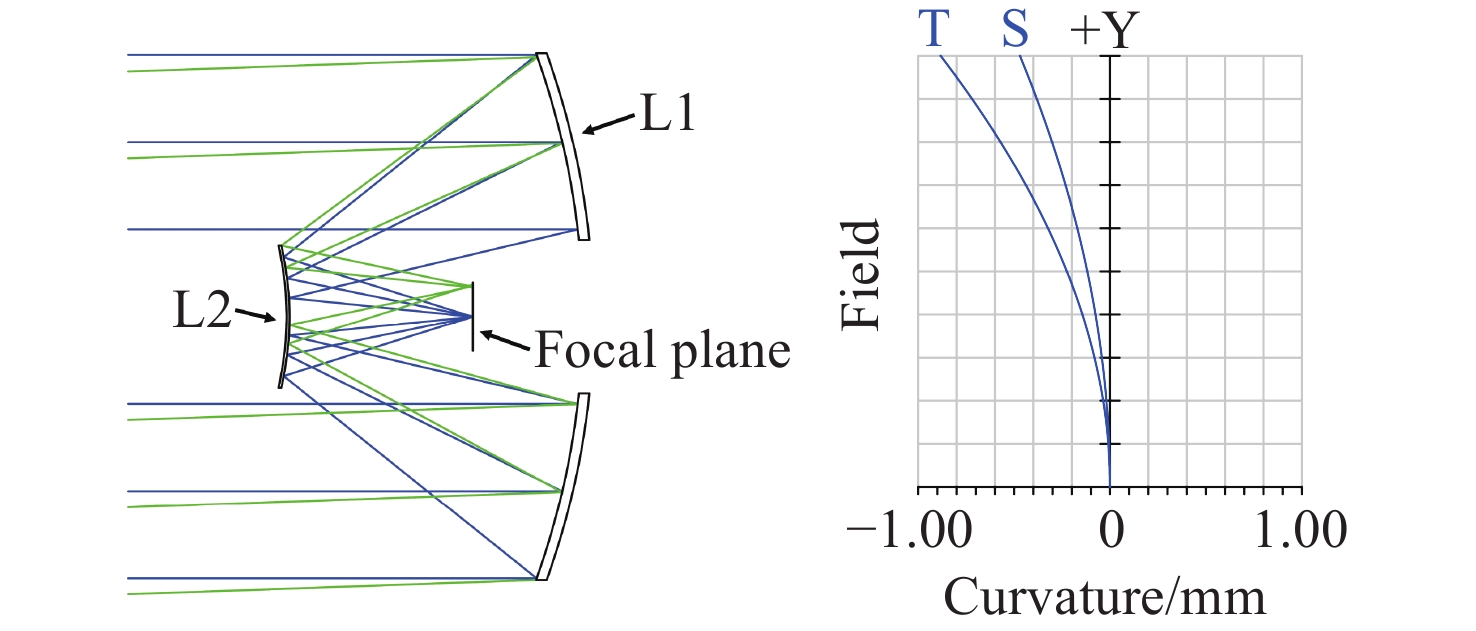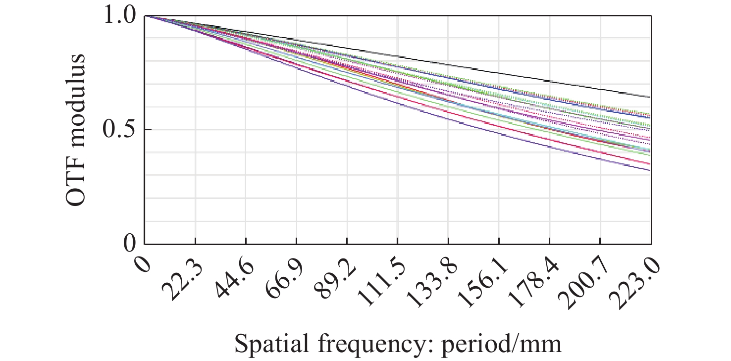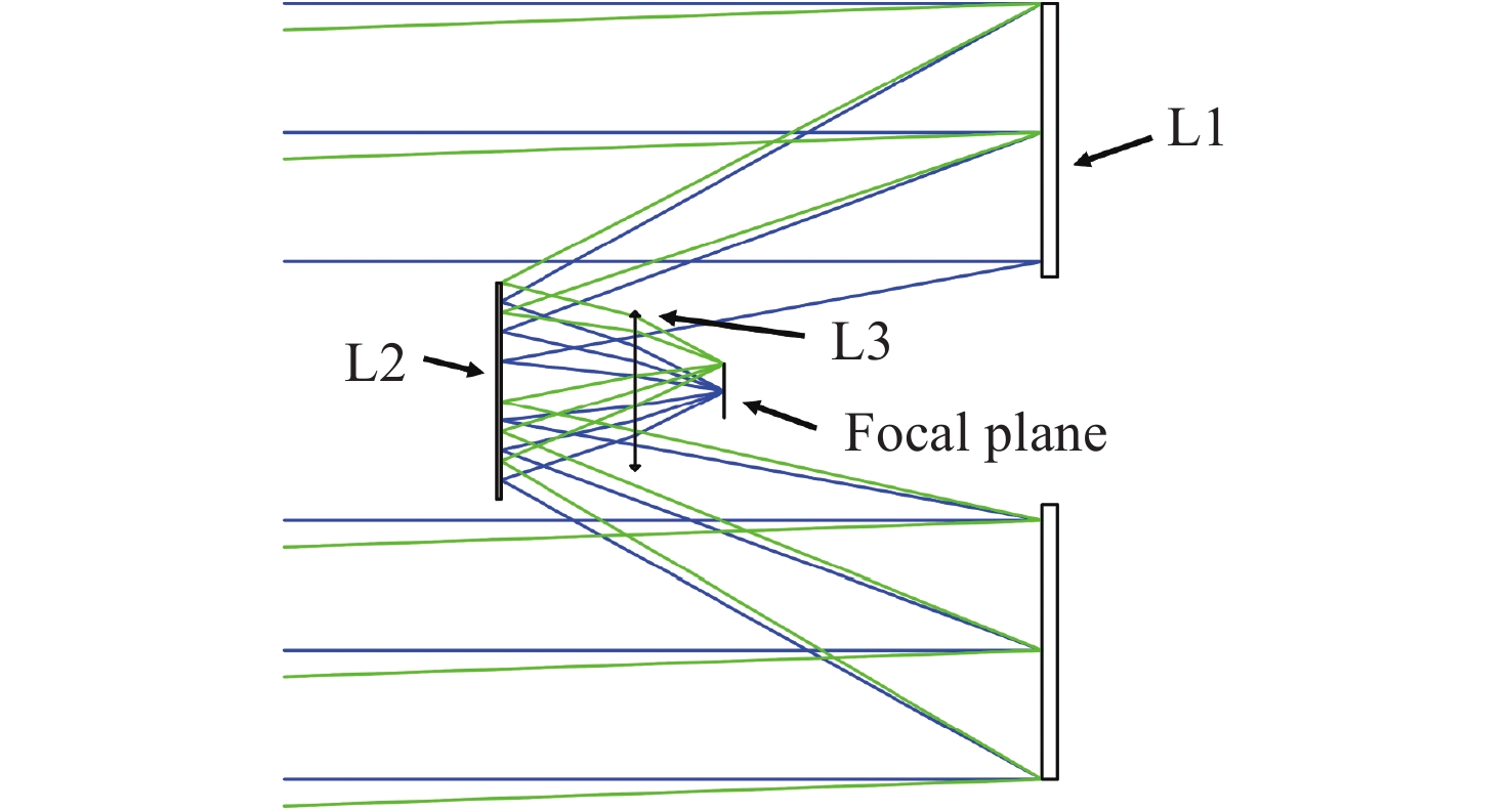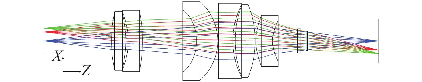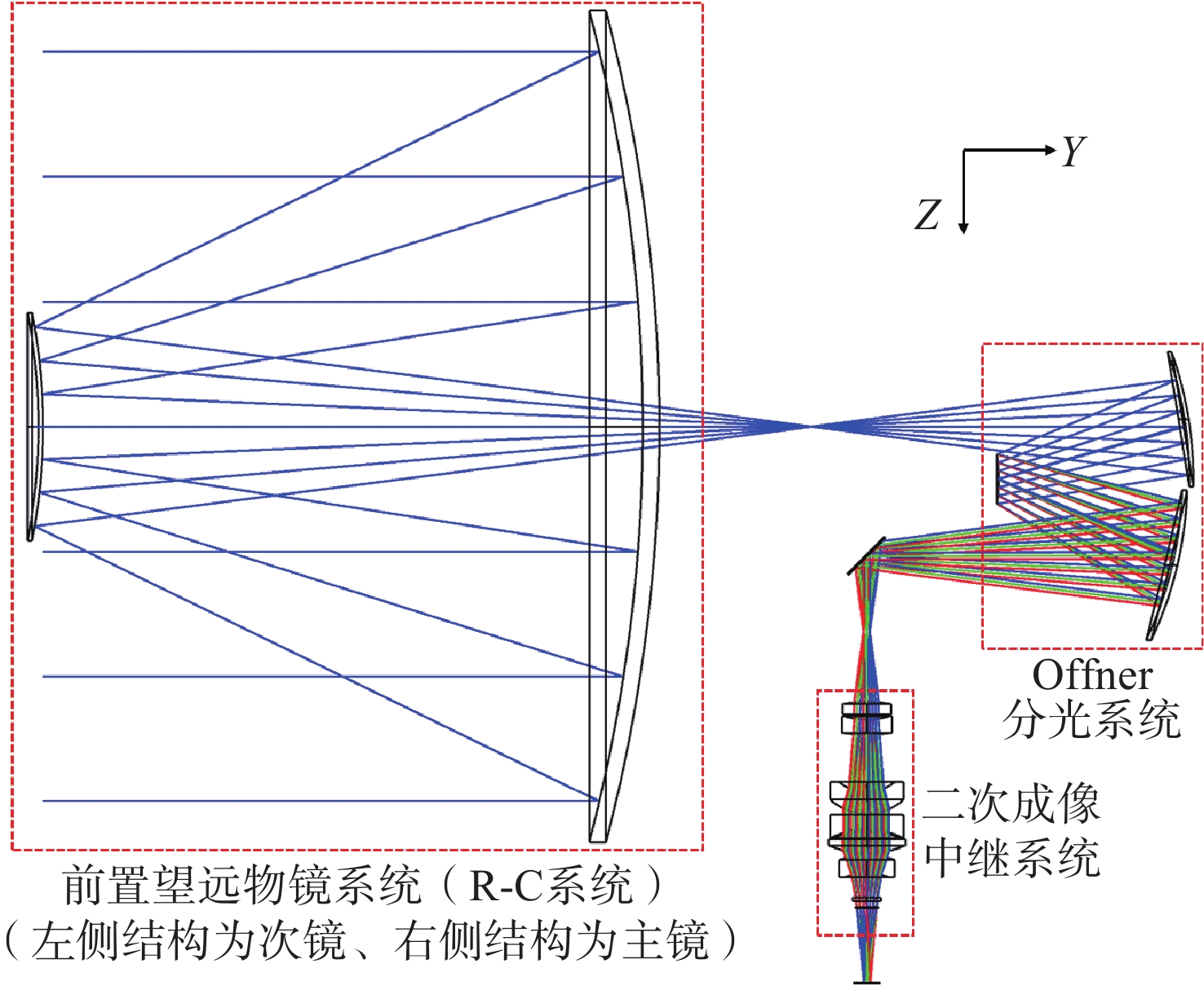 随着中长红外高光谱成像技术的突破性进展,军用高光谱成像系统凭借其独特的特征识别能力和隐蔽侦察优势,在现代战场态势感知领域展现出了显著的战略价值。本研究面向航空探测应用需求,基于320×240像素双色制冷型红外探测器,设计了一种工作于中波红外(3.7~4.8 μm)和长波红外(7.7~9.5 μm)的双波段Offner型光谱成像系统。该系统采用折射与折反射混合光学结构,实现了32 mm、200 mm、800 mm三视场切换式变焦功能。光学系统采用Offner分光结构,有效抑制了系统初级像差;其次,通过引入二次成像中继系统,实现了100%冷光阑匹配,有效降低了冷反射效应。实验测试结果表明,该系统在各波段及不同焦距状态下均表现出优异的成像性能,在特征频率17 lp/mm处,调制传递函数接近衍射极限,且温度变化对成像质量变化影响不大,光学像质满足指标设计。该光学系统兼具宽光谱响应、大变倍比(25×)和快速视场切换等特点。光谱分辨率达到25 nm,其成像质量与光谱分辨能力满足航空光电侦察的技术需求,在军事侦察、安防监控及环境监测等领域具有重要的应用价值。