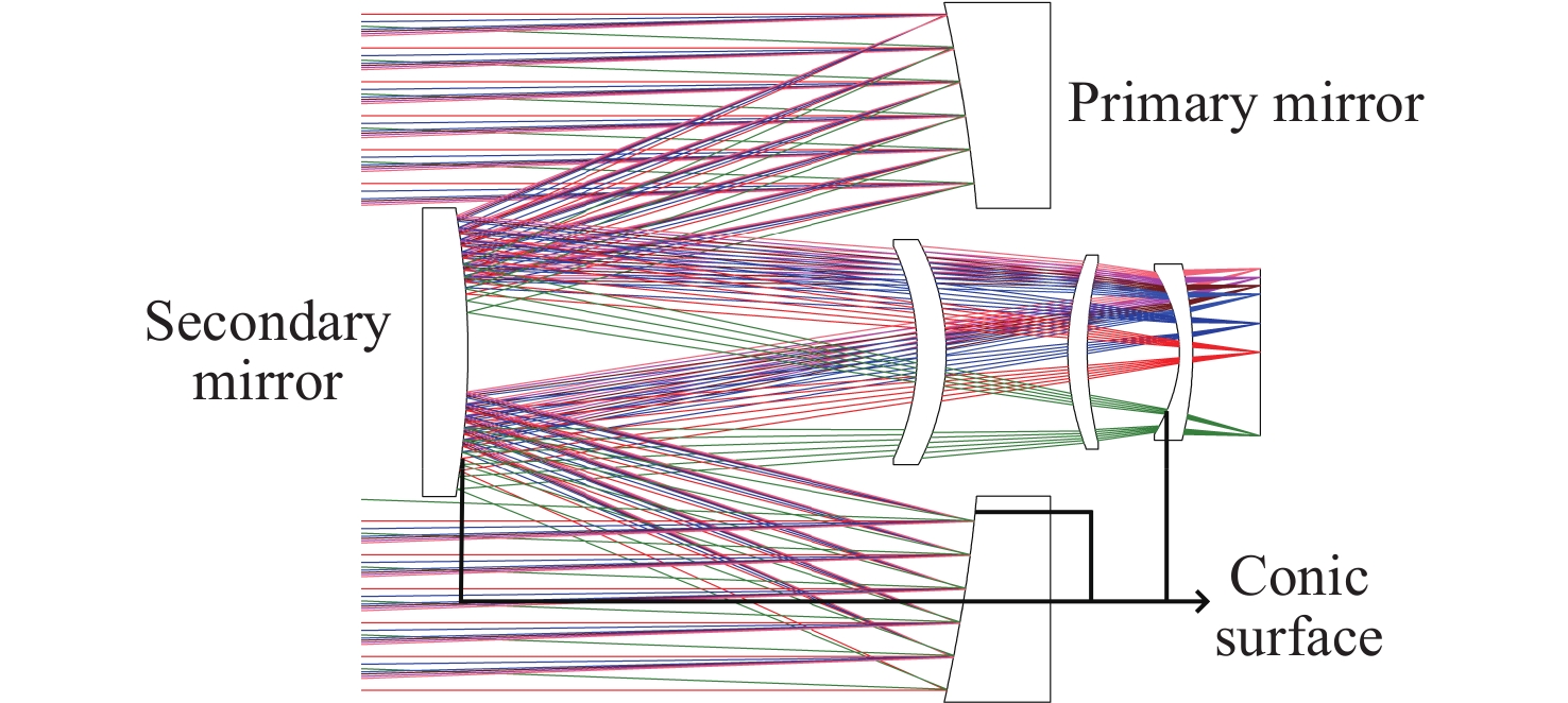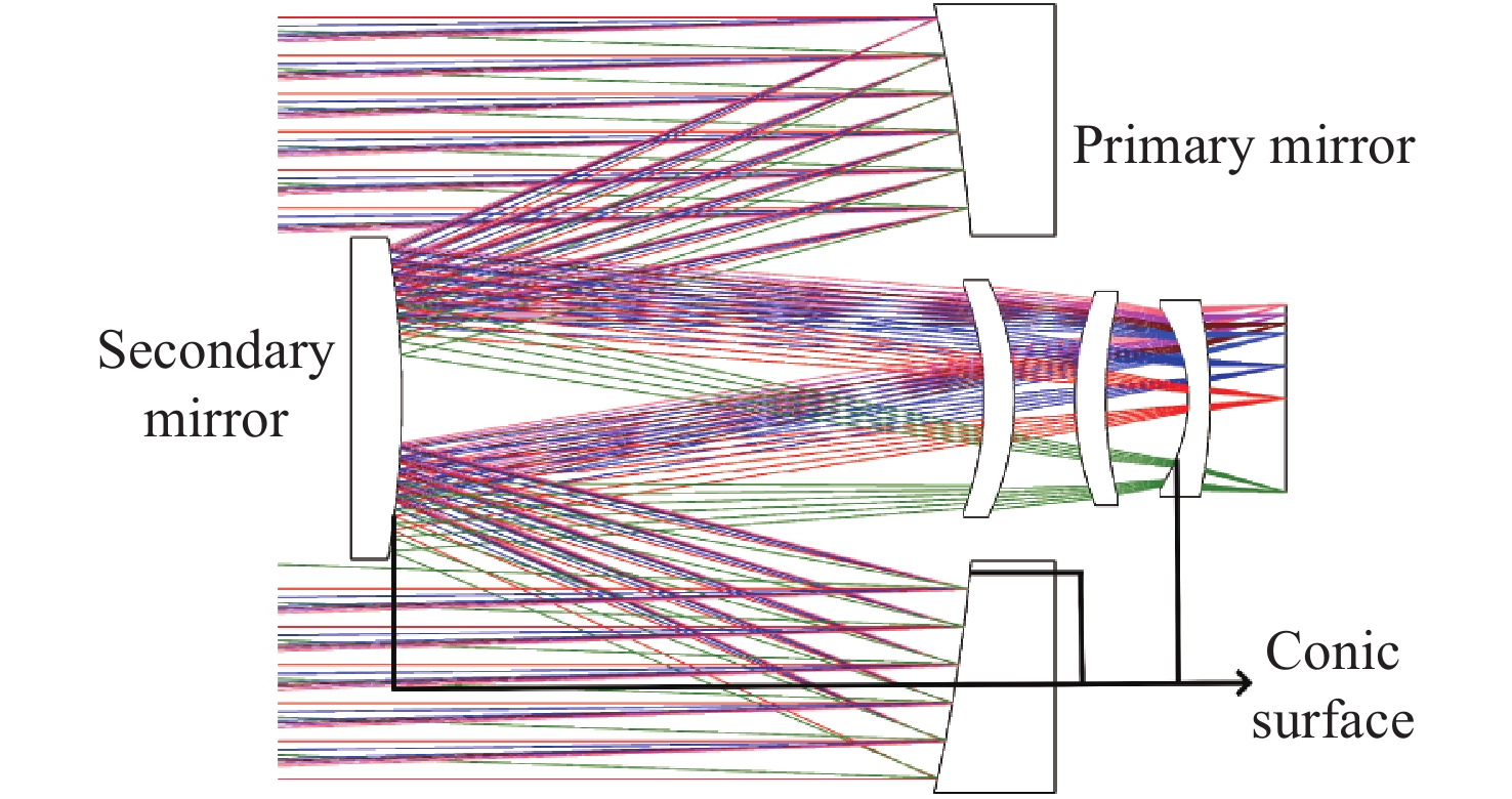 折反式空间相机广泛应用于空间探测领域,温度变化将会导致其成像质量下降。针对该问题,本文对折反式空间相机进行了宽温度范围的无热化设计。首先,对相关的光学元件、机械结构等部件进行了温度影响分析,并总结消热差的便捷方法。接着,以工作在400 nm~