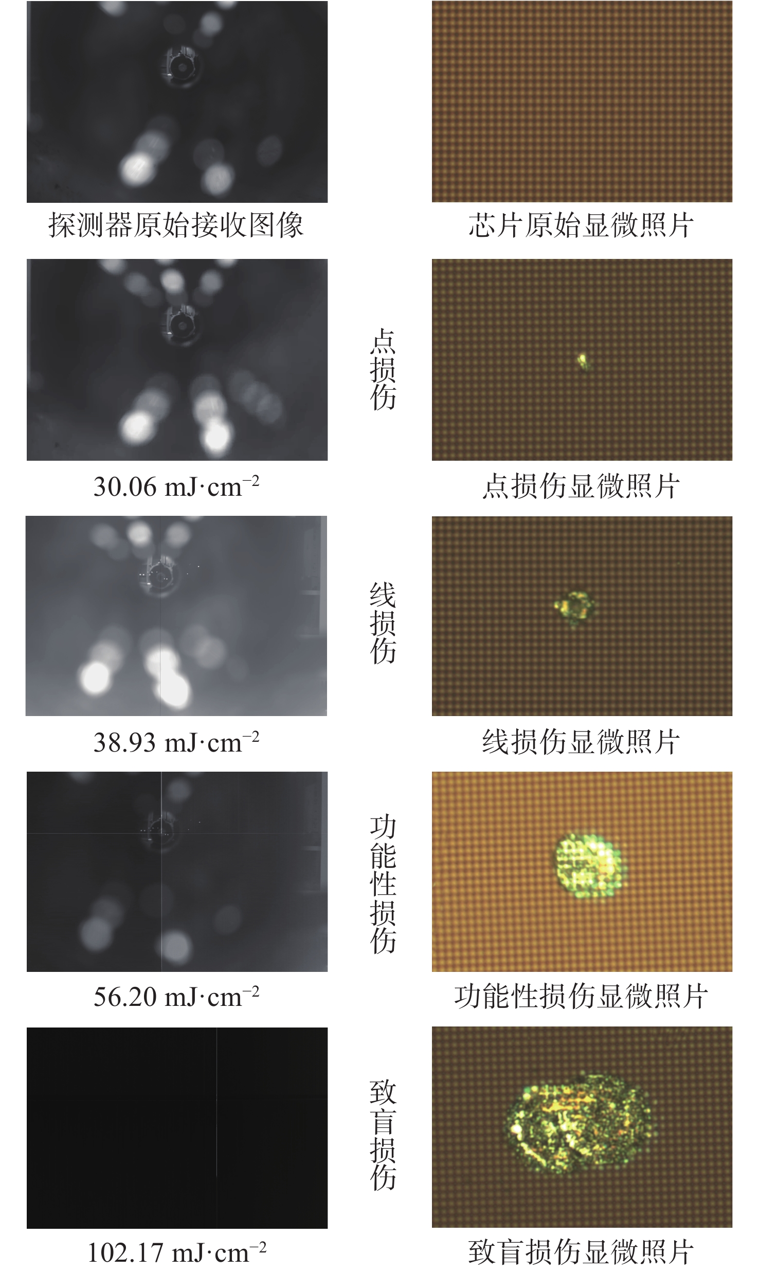 为了模拟真实工作场景下激光对可见光成像系统的损伤效应,将由滤光片和背照式CMOS探测器共同构成的探测器组件作为靶材,探讨了532 nm和