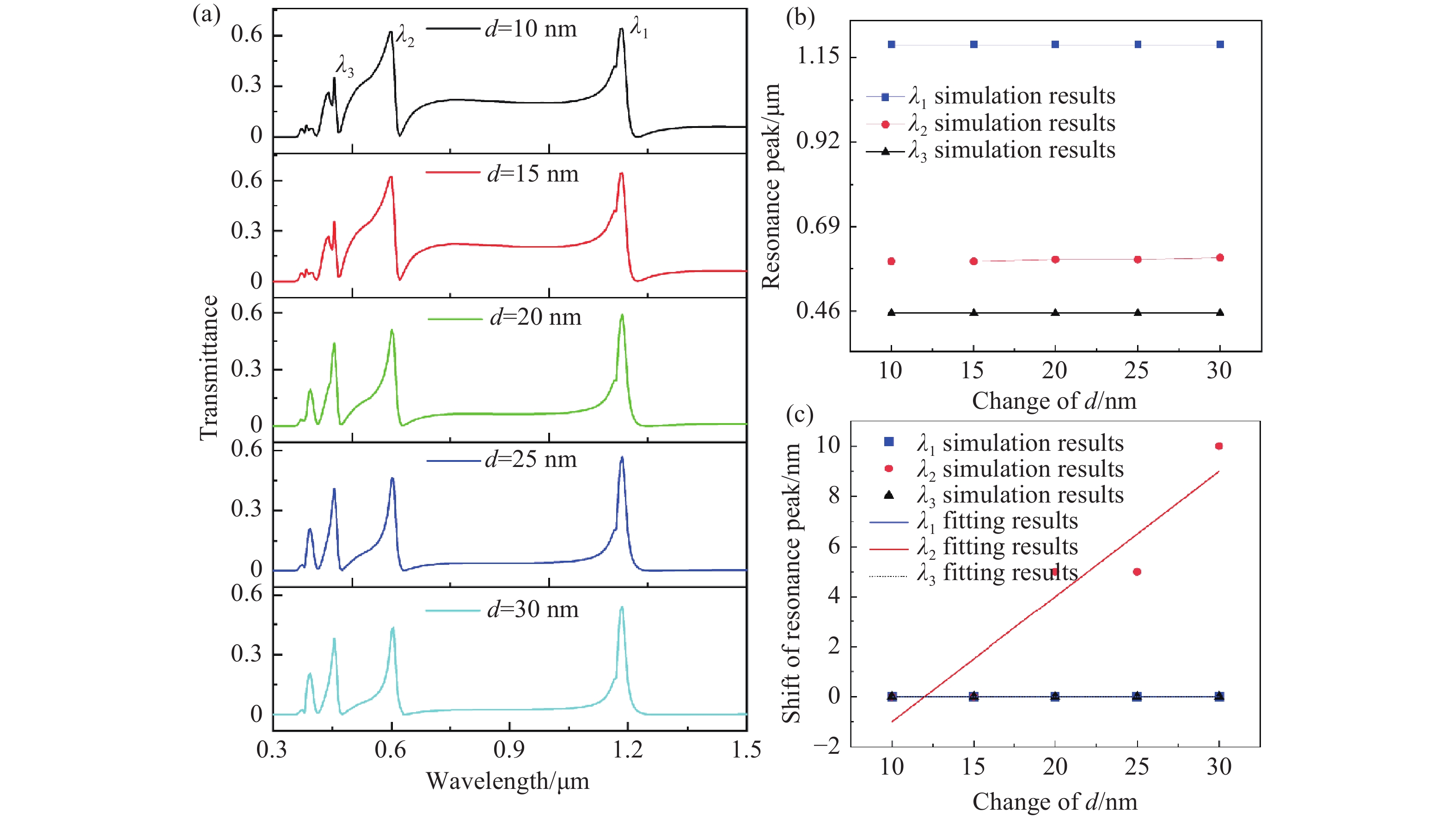 本文设计了一种由两个一端封堵的金属-绝缘体-金属(MIM)波导与一个D形腔耦合组成的表面等离激元波导结构。使用有限元方法(FEM)模拟了该结构的传输特性、磁场分布以及折射率传感特性。在透射光谱中可以明显观察到多Fano共振现象。这些Fano共振源于D形谐振腔产生的共振离散态与一端封堵的MIM波导产生的连续态之间的相互耦合。通过系统地调整结构参数,研究了其对Fano共振调制的影响。此外,通过改变MIM波导中绝缘层的折射率,研究了基于Fano共振折射率传感特性。结果表明,该结构实现的最大折射率灵敏度和品质因子(FOM)分别为
