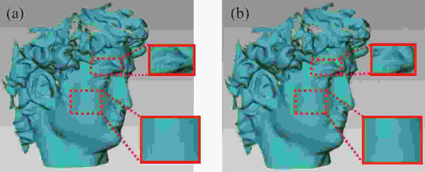 0.0706 rad降至0.0168 rad,最大相位误差由0.4129 rad降至0.0960 rad。在人脸石膏模型实验中,校正后的标准相位误差由0.0472 rad降至0.0102 rad,最大相位误差由0.2990 rad降至0.2408 rad。在复杂形貌人脸石膏件的三维重建中,校正后表面质量得到显著提升,影响相位质量的水波纹效应大幅减小。与现有的大步相移方法相比,本文提出的方法不仅具有较高的相位获取精度,而且在所需数据量和操作便捷性方面也具有明显优势,显示出广泛的应用前景。Abstract:Stripe projection technology is widely used in 3D measurement and surface morphology reconstruction, where phase quality is a critical determinant of measurement accuracy. However, the nonlinear relationship between input and output light intensity is a major source of phase error. To address this issue, this paper introduces a novel system nonlinear active correction method. This method captures the variation pattern between input and output light intensity by projecting a small number of uniform gray-scale images onto a standard plane. This pattern is then integrated with active system nonlinear correction to construct a system nonlinear model based on the input-output light intensity variation. Genetic algorithms are used to optimize the coding values, which are then used to actively correct the projected fringes via fringe coding. The corrected fringes effectively reduce the influence of nonlinear effects, thereby significantly improving the quality of phase acquisition. To validate the proposed method, computer simulations were performed using three-step phase shifting. The results showed an 88% reduction in the standard error and an 85.5% reduction in the maximum error. In actual standard plane experiments, the corrected standard phase error decreased from