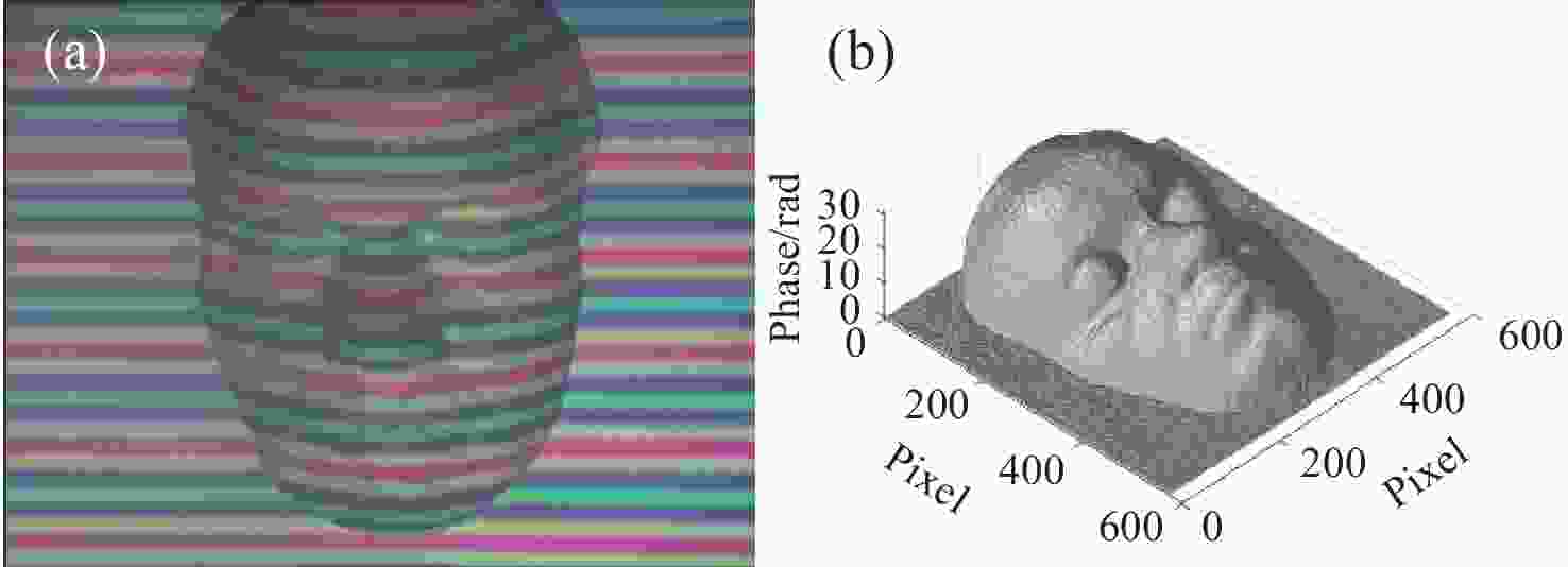 为了实现动态物体的三维轮廓测量,并克服传统傅立叶解调方法中由于不同载频频谱混叠而导致的测量精度受限,以及彩色复合条纹投影技术中的颜色耦合问题,本文提出了一种基于快速迭代滤波的三频彩色条纹投影轮廓术。该方法首先通过CCD相机采集一帧彩色图像,其中R、G、B通道分别携带了不同频率的变形条纹图像。然后,通过各分量互减去除噪音及干扰背景,从而得到了频率混合的条纹图。接着,利用快速迭代滤波将不同的频率条纹图进行分离和颜色解耦。随后,对由R、G、B通道分离的单频率的条纹图分别进行傅立叶变换并提取包裹相位信息。最后,为了实现精确的相位展开,采用空域解包裹算法展开低频相位,并基于此依次展开中频和高频相位,从而完成整个相位解包裹过程。仿真和实验结果表明,本文方法的相位展开精度比传统傅立叶方法提高约7倍,且相比其他单帧解调方法,本文方法精度最高,抗噪性能强,为高精度、动态实时三维测量提供了一种有效的技术方案。
