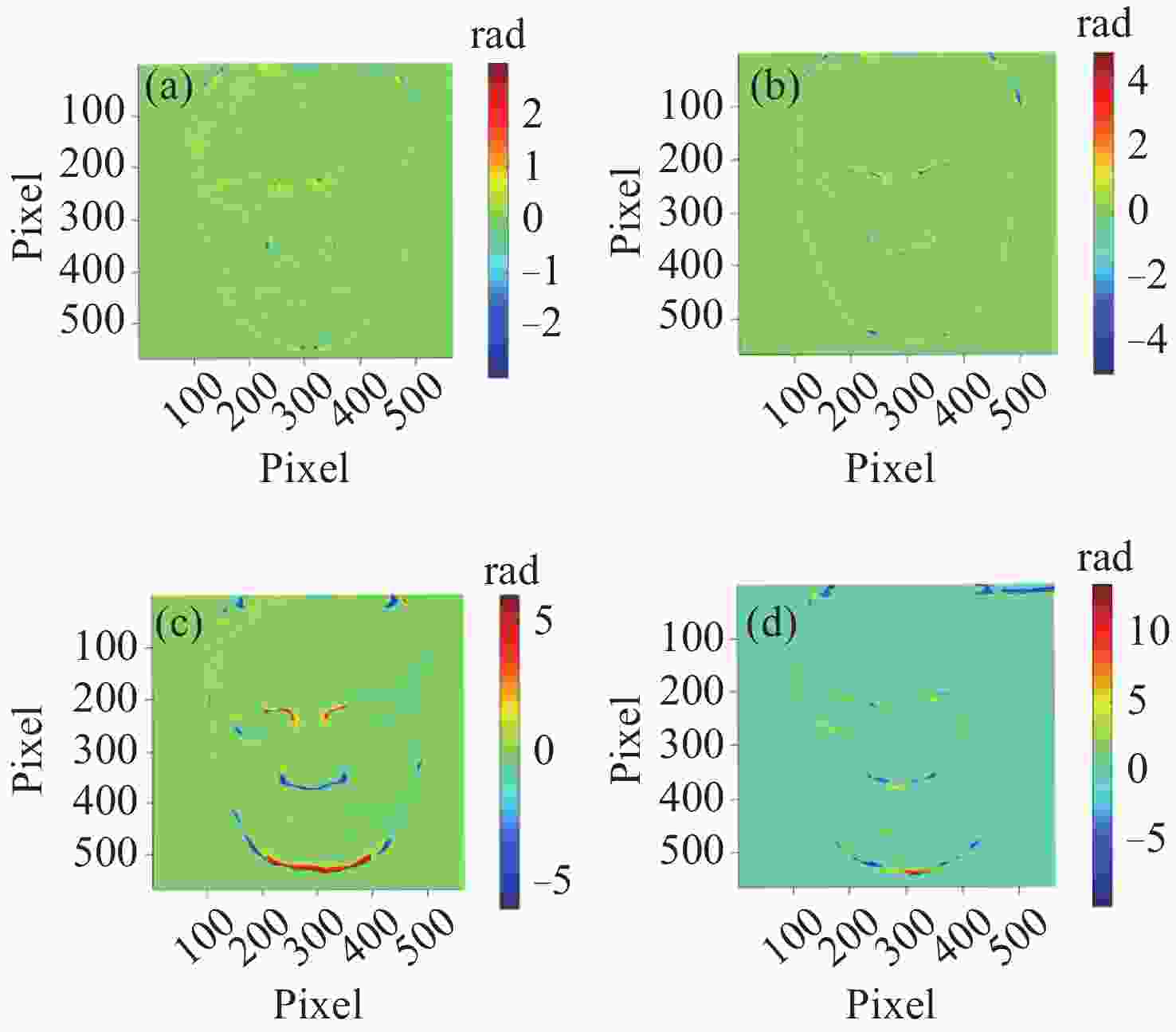 表 1 本文方法、基于VID的方法、基于BEMD的方法、FTP方法和四步相移法的相位误差(均方根误差(RMSE))和第288行与第350行与参考值的标准差(SD)