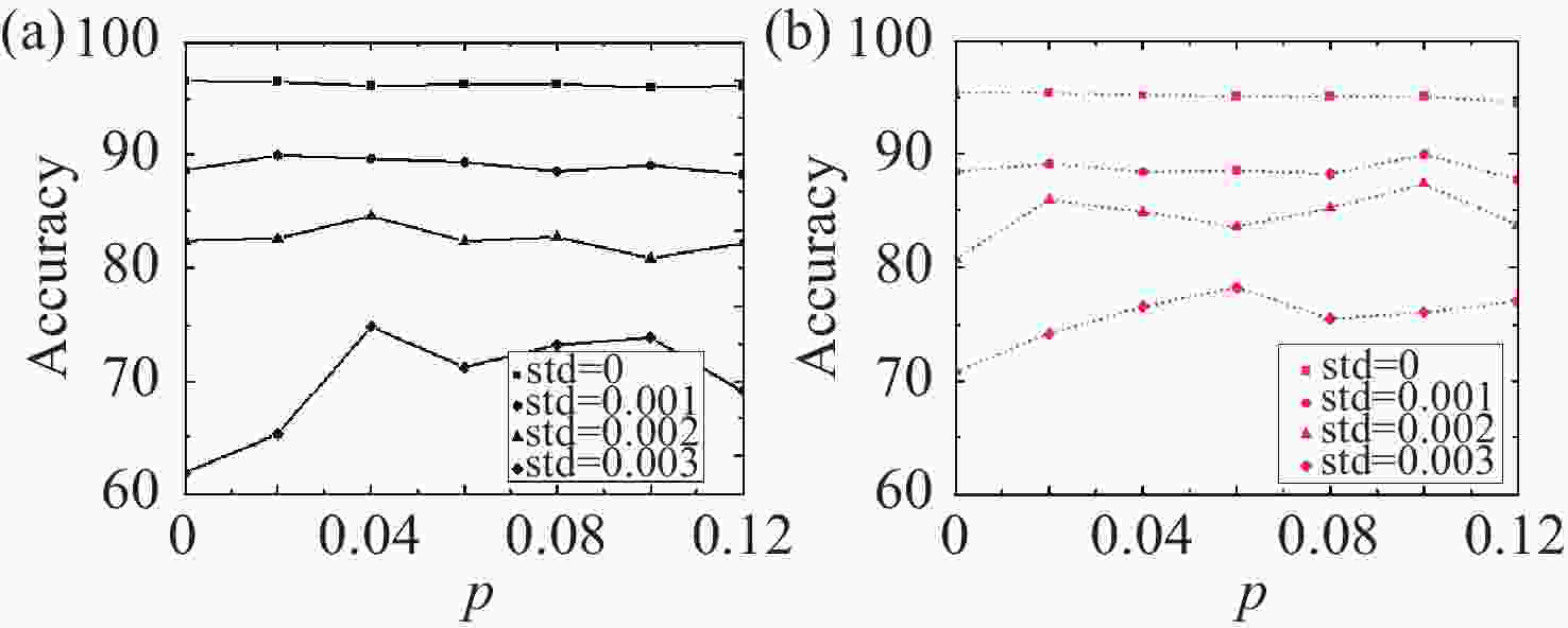 光电混合的光学卷积神经网络(OCNN)通过结合光子元件的并行线性计算能力和电子元件的非线性处理优势,在分类任务中展现了巨大的潜力。然而,光子元件的制备误差即不精确性和执行后向传播的FPGA中的电路噪声对网络性能有显著影响。本文搭建了光电混合的OCNN,其中的线性计算由基于马赫-曾德尔干涉仪(MZI)的光学计算层完成,而池化计算及训练过程则在FPGA中完成。本文着重研究了在FPGA上的片上训练方案,分析了噪声对片上训练效果的影响,并提出了增强OCNN抗噪能力的网络优化策略。具体地,通过调整池化方式和尺寸以增强OCNN的抗噪性能,并在池化层后引入Dropout正则化以进一步提升模型的识别准确率。实验结果表明,本文采用的片上训练方案能够有效修正光子元件的不精确性带来的误差,但电路噪声是限制OCNN性能的主要因素。此外,当电路噪声较大时,其造成的MZI相位误差标准差为0.003,最大池化方式与Dropout正则化的结合可以显著提升OCNN的测试准确率(最高达78%)。本研究为实现OCNN的片上训练提供了重要的参考依据,同时为光电混合架构在高噪声环境下的实际应用探索提供了新的思路。