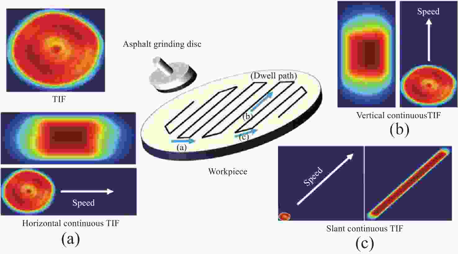 本文提出采用多个加工单元分别同时负载单个工具共同执行加工任务,以降低加工单元执行时间,从而大幅提升大口径光学元件的加工效率。首先,根据光学元件提出一种多机器人协同加工布局,接着,针对3种潜在的可行轨迹进行模拟加工。然后,在离散仿真的基础上,得出了轨迹参数的选取原则,针对离散仿真无法体现轨迹连续性对面形影响这一局限提出并建立了运动模式适配的积分去除函数模型。该模型将轨迹连续性的影响引入模拟加工中,据此提出一种协同加工避障策略,并采用最优轨迹进行了协同加工的效率提升验证实验。实验结果表明:初始面形PV=18.310