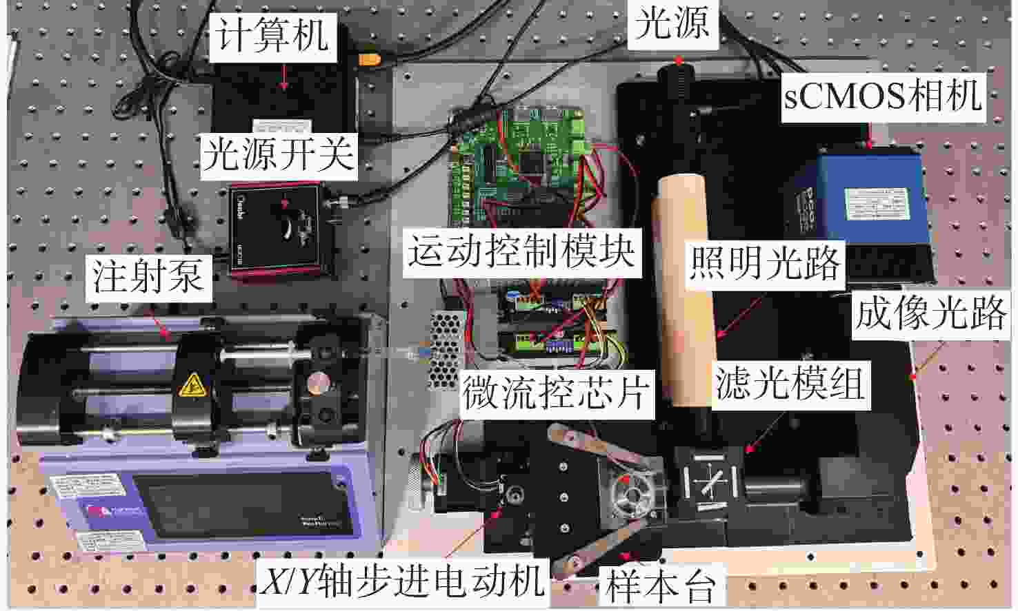 为实现肿瘤标志物的早期诊断,本文设计了一种适用于流动相样本的单分子免疫检测系统,并对其光学荧光成像平台及图像检测计数算法进行了研究。首先,为满足低浓度、高通量样本的即时检测需求,提出了一种基于流动相的单分子免疫检测方法。其次,结合微流控芯片的规格要求,设计了一套光学荧光成像检测平台,通过滤光和分光元件的合理配置,利用多模块集成实现荧光样本的高分辨率成像。最后,在离焦粒子的图像检测计数算法的基础上,优化了特征匹配方法,以高效处理非焦面荧光粒子信号。实验结果表明,本系统在单分子免疫标志物样本检测中的下限可达到0.001 pg/mL,在0.001~1 pg/mL的理论检测范围内,变异系数均小于10%,可在一小时内完成最多十份样本的检测。本系统满足了单分子免疫检测的稳定性、高灵敏度和高通量检测需求,在癌症早期筛查领域具有重要的应用前景。
