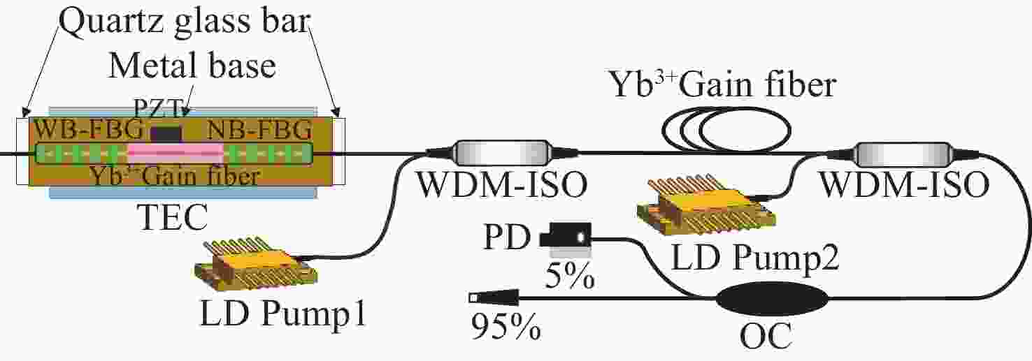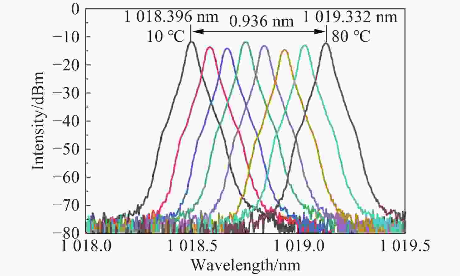 1018 nm单频种子源的迫切需求,研制了一种线宽为810 Hz、相对强度噪声低于−140 dB/Hz的宽调谐1018 nm单频光纤激光器。该激光器基于分布式布拉格反射(DBR)结构,使用8 mm长的掺镱光纤,激光器配有高稳定的主动温控系统以及压电陶瓷(PZT)快速频率调谐装置。温度控制在10 °C至80 °C,在25 °C控温2小时内,DBR谐振腔的温度波动仅±0.0005 °C。经实验测试,激光器在25 °C下保持单纵模输出,线宽为810 Hz,温度调谐范围超过0.9 nm,PZT快速调谐范围高达10 GHz,且在调谐过程中不会出现跳模现象。单频激光在1 kHz低频段的相对强度噪声为−150 dB/Hz,当频率大于1.5 MHz时的相对强度噪声低于−140 dB/Hz。结果表明该激光器输出低噪声的同时实现了宽调谐。Abstract:Addressing the urgent demand for