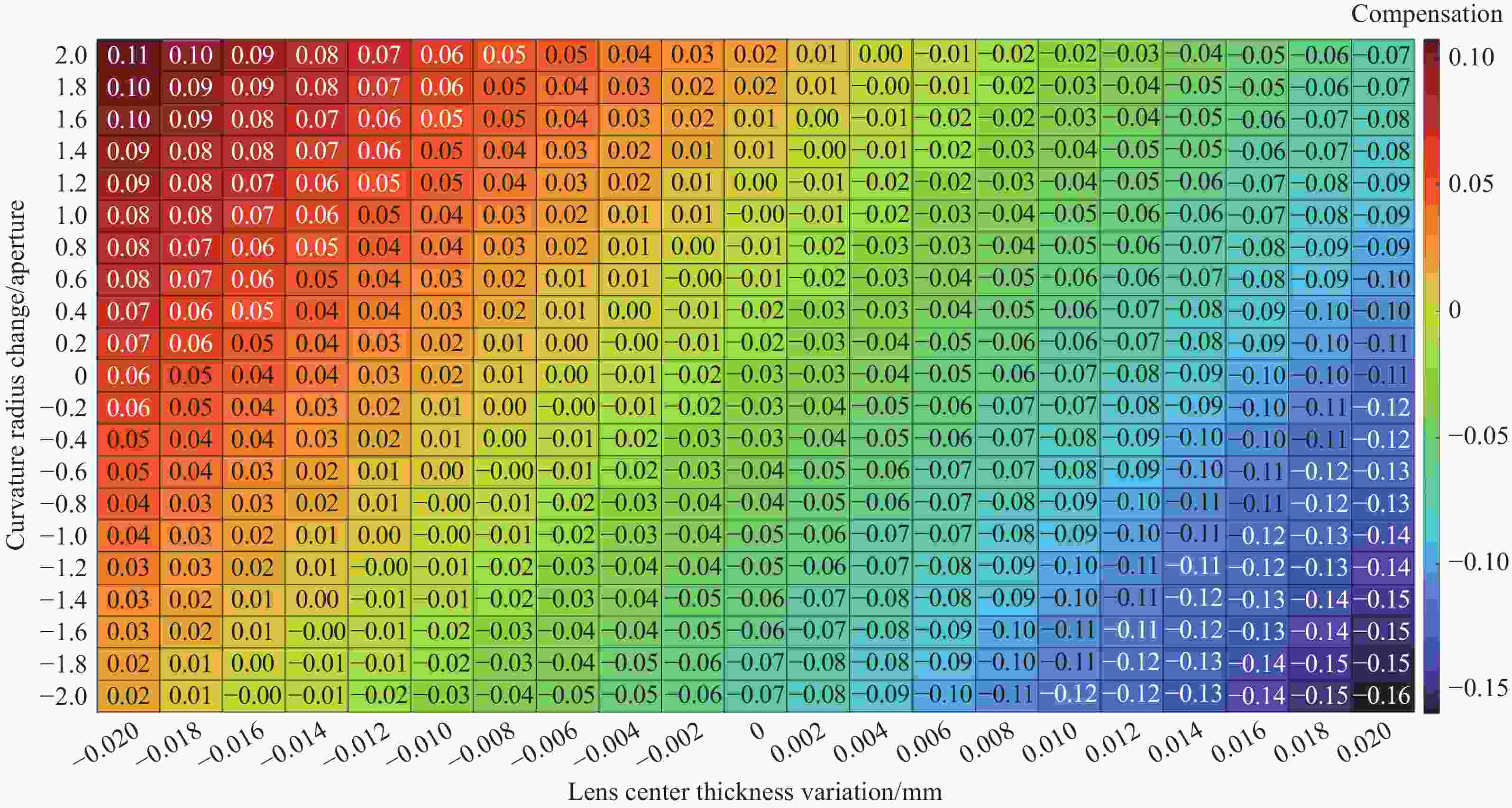 Item Index Radius of curvature 3 fringes Lens center thickness 0.02mm Surface irregularity 0.3 fringes Surface decenter 0.03mm Surface tilt 0.03° Element decenter 0.03mm Element tilt 0.03° Index 0.001 Abbe number 0.5% Test wavelength 1550 nm 表 4 公差分析结果