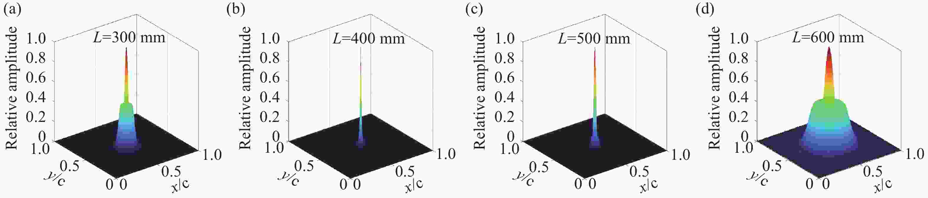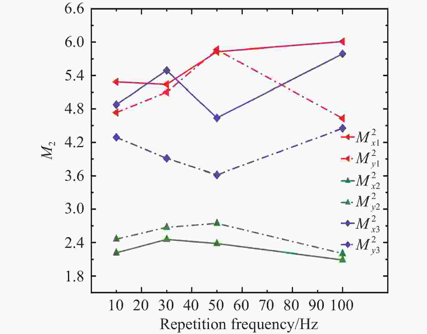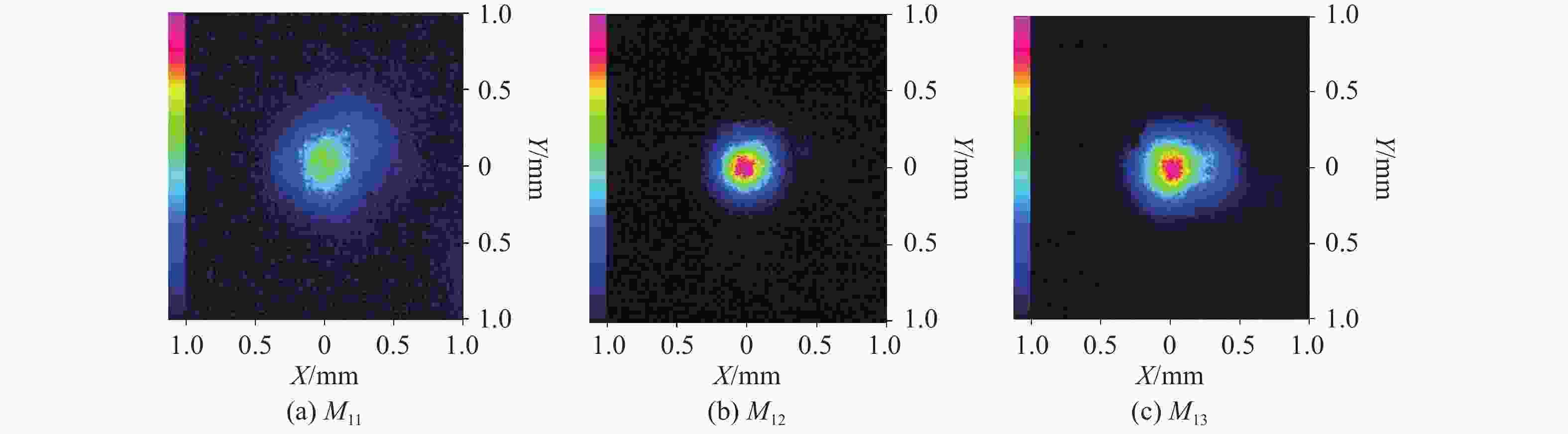 M x 2=2.09、M y 2=2.20的1064 nm高光束质量激光输出。Abstract:To achieve high-power and high-beam-quality laser output from a laser-diode (LD) side-pumped solid-state laser, we investigate an unstable resonator incorporating a Gaussian output mirror. The boundary finite element method was utilized to analyze the effects of the resonant cavity length, Gaussian mirror membrane spot radius, and curvature radius on high-order mode suppression. The functional theory of mode loss difference was applied to determine the mode-matching range and the optimal parameters for the spot radius. Furthermore, an output power model was established to derive the theoretical optimal central transmittance for compensating loss. Based on the theoretical and simulation results, the resonator parameters were optimized, and the output beam’s mode distribution and quality were experimentally characterized using different Gaussian mirrors. Under the operational conditions of a 400 mm resonator length, 7.3 A pump current, and 100 Hz repetition frequency, the implementation of a Gaussian mirror with a 3 mm spot radius, 1.5 m curvature radius, and 17% central transmittance produced a high-quality