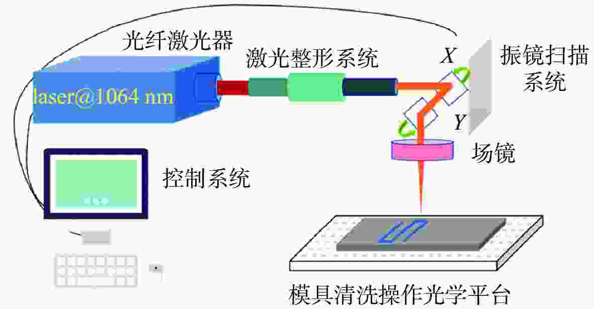 1064 nm Nd-doped pulsed laser, reshaping the Gaussian beam into a flat-top beam, and combining with a "bow" shape scanning path of the galvanometer mirror. The process parameters were optimized using a single-variable method. The experimental results indicate that when the laser energy density is in 0.55−0.77 J/cm2, the pulse duration and repetition rate need to be adjusted in coordination to balance the thermal input, enabling complete removal of contaminants without any damage to the substrate. Parameter sensitivity analysis reveals that the optimal duty cycle range is from 0.8% to 1.0%. Furthermore, when the power exceeds the threshold (150 ns@50% average power or 200 ns@50% average power), it may cause damage to the substrate, which indicates that laser parameter matching is crucial for the cleaning effect and material protection. This research provides a high-precision, non-contact and environmentally friendly cleaning solution for chip packaging molds, and verifies the feasibility of laser cleaning technology in the field of integrated circuits.-