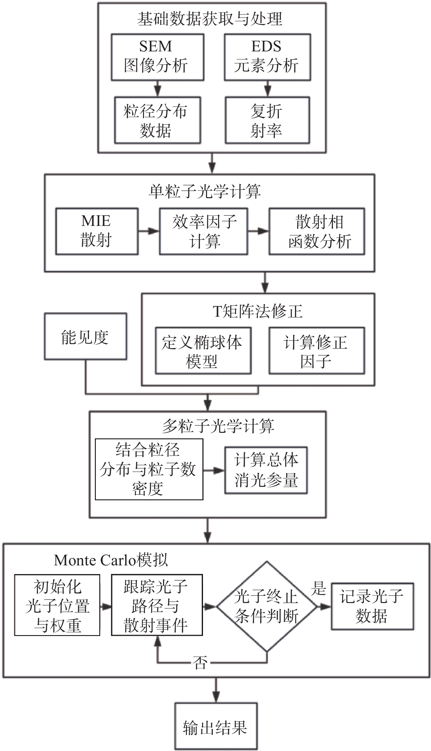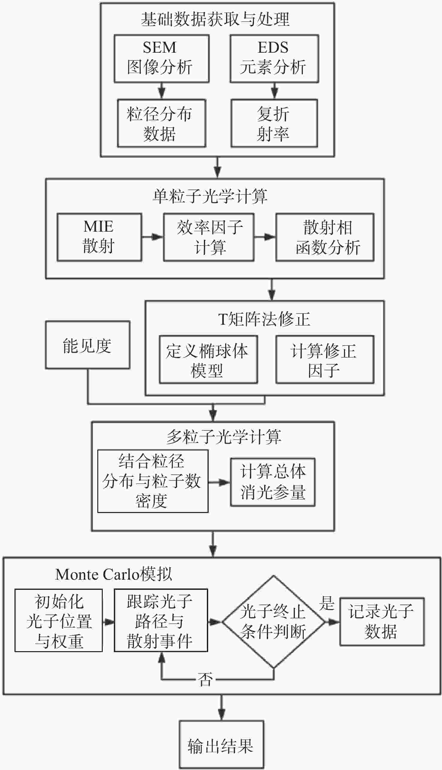 为精确量化沙尘天气对城市光电系统可见光传输的衰减影响,本研究以呼和浩特地区为例,构建了融合非球形粒子修正的光传输预测模型。基于Mie散射理论,结合本地沙尘样品的扫描电镜与能谱分析数据,计算三基色红绿蓝波段的沙尘粒子消光特性;进而采用T矩阵法对非球形粒子的散射参数进行修正,并利用Monte Carlo方法模拟光子的多次散射过程,系统比较单次与多次散射模型下的衰减率差异。结果表明,单次散射模型会系统性高估衰减率,蓝光波段最大误差达18.3%;经多次散射修正后,衰减率平均降低12.4%。在本例中,能见度为400 m,蓝光衰减率约为95 dB/km,显著高于红光的衰减率(约70 dB/km)。本研究构建的混合模型显著提升了沙尘环境下可见光衰减的预测精度,明确多次散射效应的关键影响,为城市光电系统在沙尘天气下的可见光传输提供了可靠的理论依据与数据支持。