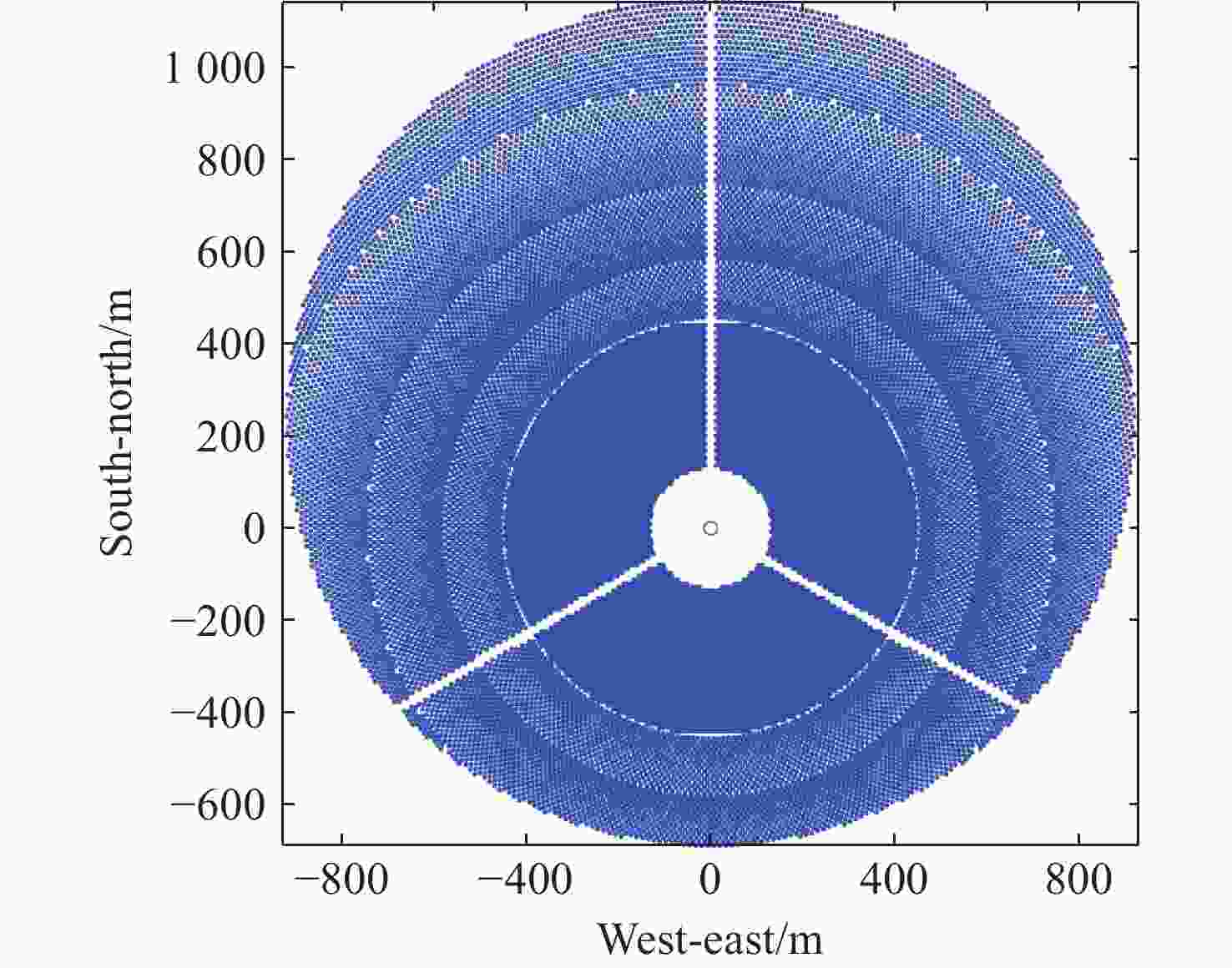 典型日(天) 时刻(h) DNI(KW/m2) 瞄准因子[$ {K}_{1},{K}_{2},{K}_{3} $] 峰值能流(MW/m2) 截断因子(%) $ \Delta {f}_{{\mathrm{int}}} $(%) CV 春分日(81) 12.0 0.850 赤道瞄准 1.9431 82.02 0.0 0.4503 [1.8] 1.0268 79.79 −2.23 0.2155 [2.0,2.5,3.0] 1.0171 81.16 −0.86 0.2103 夏至日(172) 12.0 0.972 赤道瞄准 2.0974 82.24 0.0 0.4641 [1.8] 1.1036 79.96 −2.28 0.1822 [2.0,2.5,3.0] 1.1214 81.29 −0.95 0.1617 秋分日(264) 12.0 0.964 赤道瞄准 2.2012 82.02 0.0 0.4501 [1.8] 1.1647 79.78 −2.24 0.2096 [2.0,2.5,3.0] 1.1859 81.14 −0.88 0.2019 冬至日(345) 12.0 0.882 赤道瞄准 1.9698 80.65 0.0 0.4507 [3.0] 1.0578 78.51 −2.14 0.2299 [2.0,2.5,3.0] 1.1026 80.07 −0.58 0.2259 -