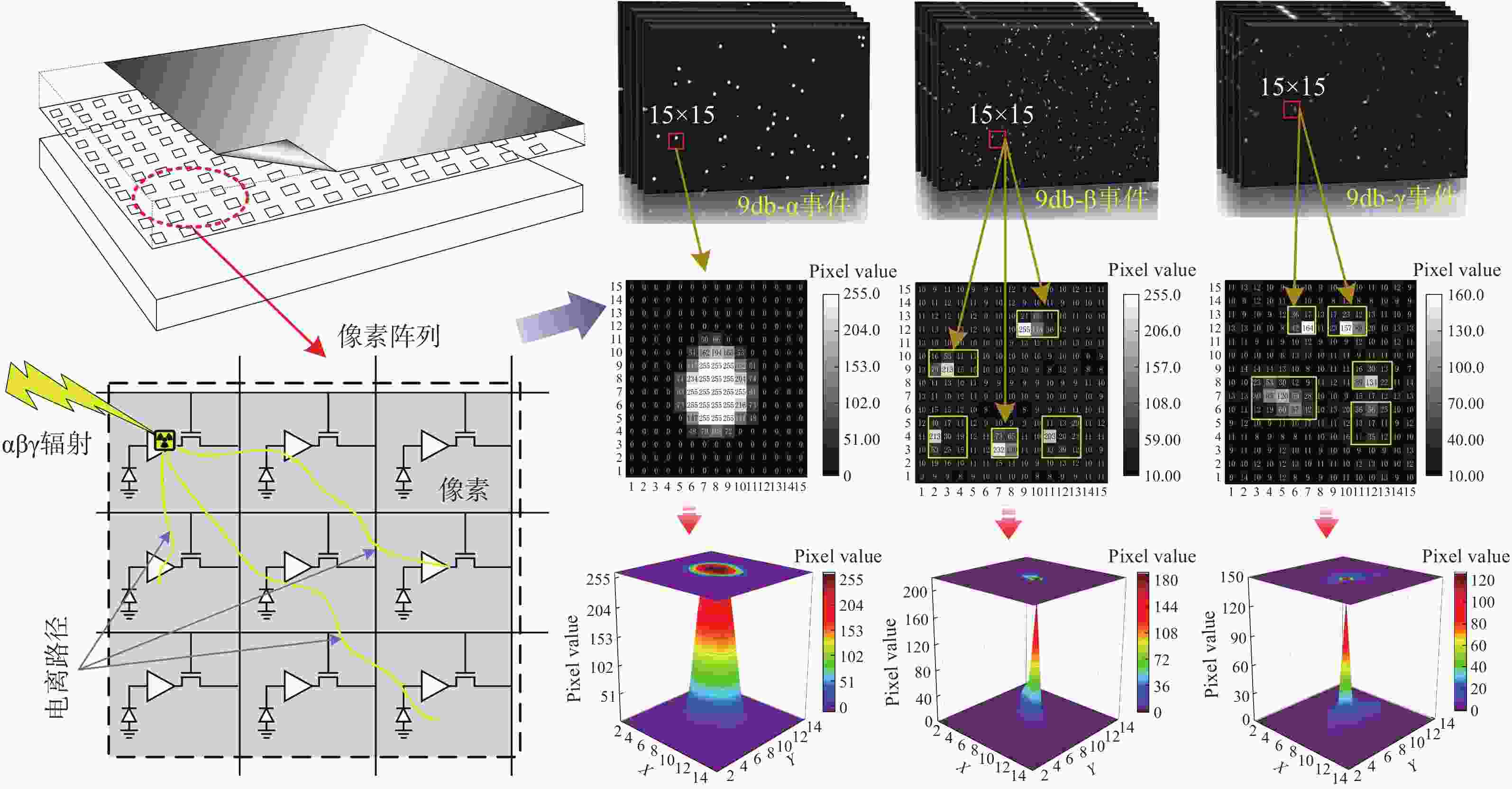 实验样品 参数 传感器像素尺寸 2.2 μm × 2.2 μm 传感器分辨率 2592 (水平) × 1944 (垂直)α 放射源活度 2.9× 104 Bq (241Am) β 放射源活度 7.4 × 107 Bq (63Ni) γ 放射源活度 9 × 1014 Bq (60Co) 表 2 响应事件的甄别效果